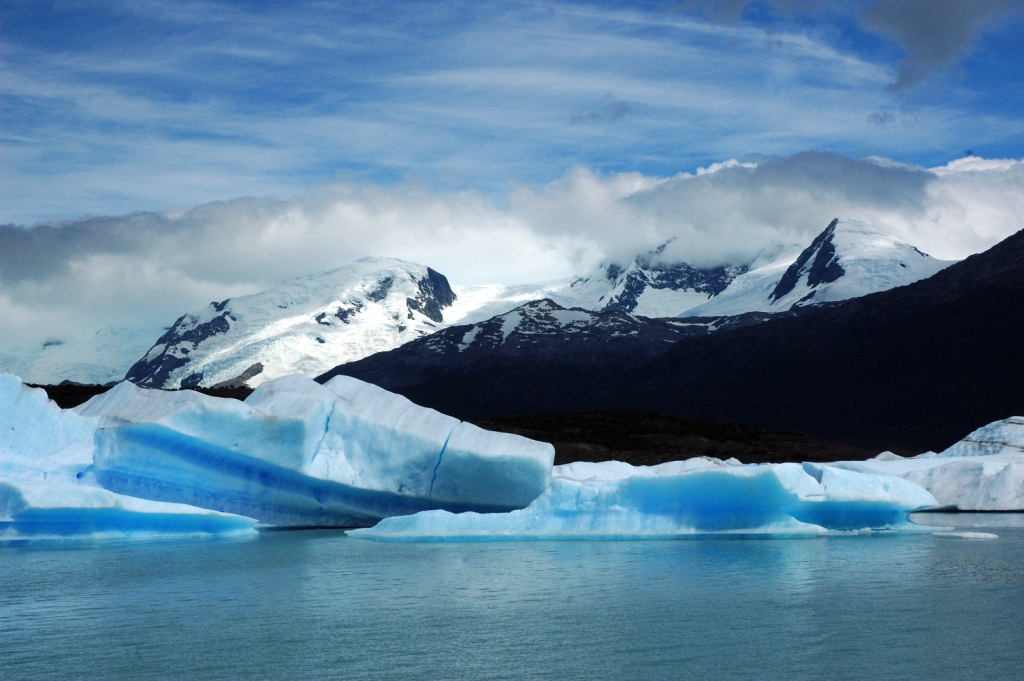 Parmi les plus beau paysage que nous ayons vus : le lac émeraude, parsemé d’icebergs d’un blanc éclatant et d’un bleu irréel, des pics enneigés et des glaciers énormes, écrasants. Et comme ce sont parmi les rares glaciers dans le monde qui se maintiennent, ils continuent à vivre et la glace qu’ils rejettent, plus récente que celle des glaciers nord-américains ou européens, est étonnamment propre. Époustouflant de voir ces mers de glace si blanche et bleue; et, du navire, ces immenses murailles qui se jettent dans la mer.