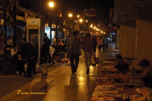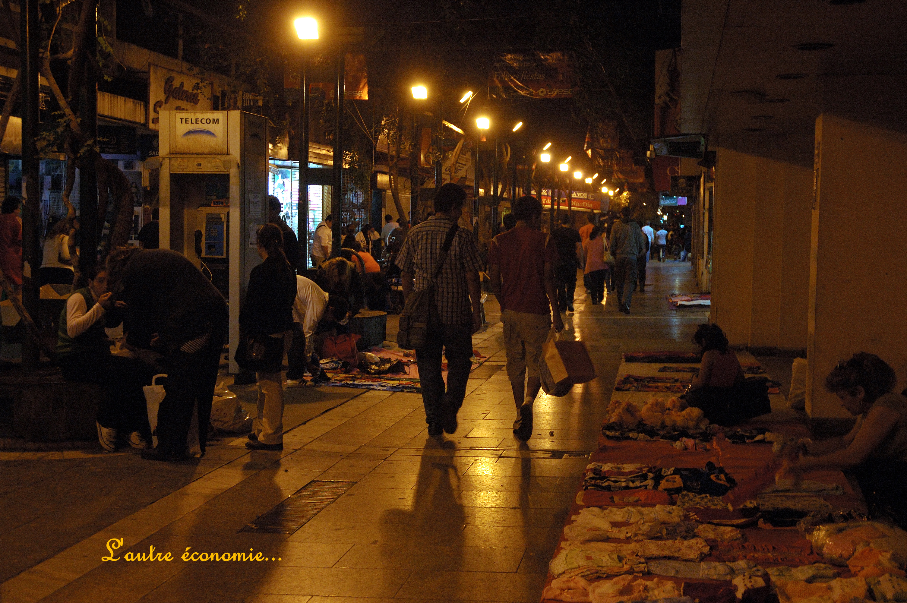 Cependant, de nombreuses rues piétonnes entourent la grande place et sont très vivantes de jour, sur semaine. Mais dès que les « tiendas » ferment vers 22 :30 heures, les vendeurs de pacotilles diverses arrivent et s’installent sur les dites rues; il en est de même le samedi en après-midi et le dimanche alors que les commerces réguliers sont fermés. Une économie parallèle s’installe, mais dans un centre-ville passablement désert.
