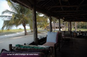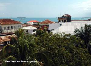 rivière du même nom et profité largement de la gentillesse et de la générosité infinies du personnel du petit complexe « hôtelier » (?), nous avons traversé le détroit de Zanzibar (40 kilomètres) dans une grosse chaloupe avec un moteur hors-bord pendant un orage, pour finalement débarquer dans la mer, à 50 mètres de la rive, dans un genre club Med, en portant nos valises sur notre tête. Vous auriez dû voir la tête des touristes qui étaient au bar de cet hôtel !…