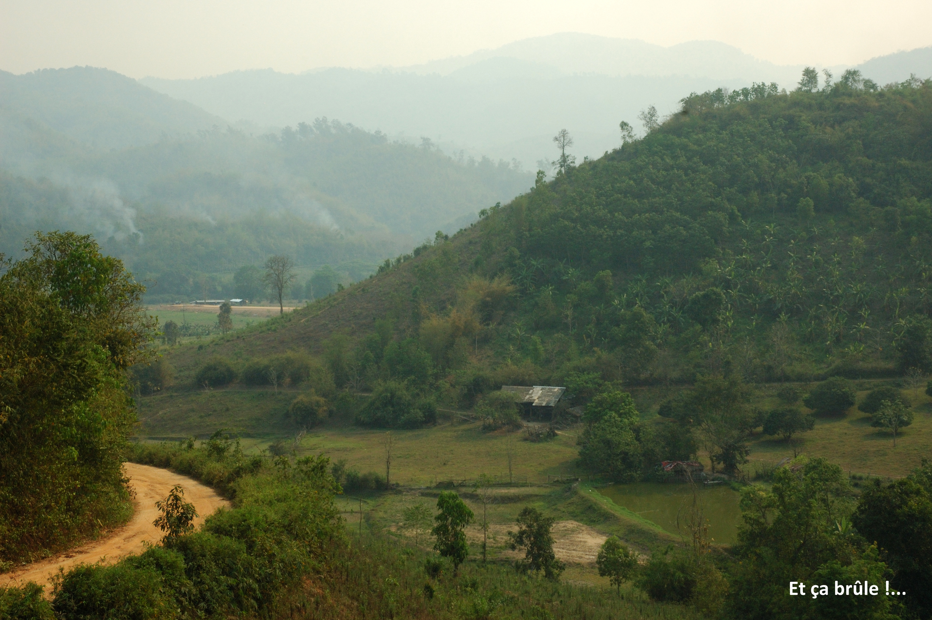 tourisme du nord de la Thaïlande; le centre de la ville est petit et se parcourt facilement en marchant. De nombreux hôtels et de très bons restos, des agences de voyage et de trekking en quantité, des musées et de nombreuses pagodes. On peut aussi y faire du shopping tant qu’on veut… Pas de problèmes de sécurité évidents, sinon se méfier comme partout de certains chauffeurs de taxis et de tuk tuk (nos expériences passées ne nous empêchent pas de nous faire prendre à chaque voyage, quoique payer 15$ au lieu de 5$ ne nous ruine pas). Nous avons vécu cependant, comme en Birmanie et au Laos, deux inconvénients : la chaleur (38C° à 42C° en moyenne) et un ciel généralement voilé par les brûlis des rizières auxquels les agriculteurs procèdent en cette fin de saison chaude et sèche. Avis : vous verrez peu de photos avec un beau ciel bleu, sauf si elles ont été prises tôt le matin, même si le soleil était toujours présent. Et encore là !… Mais un avantage aussi lié à cet inconvénient : des touristes beaucoup plus rares en cette fin de saison et des prix souvent à l’avenant.