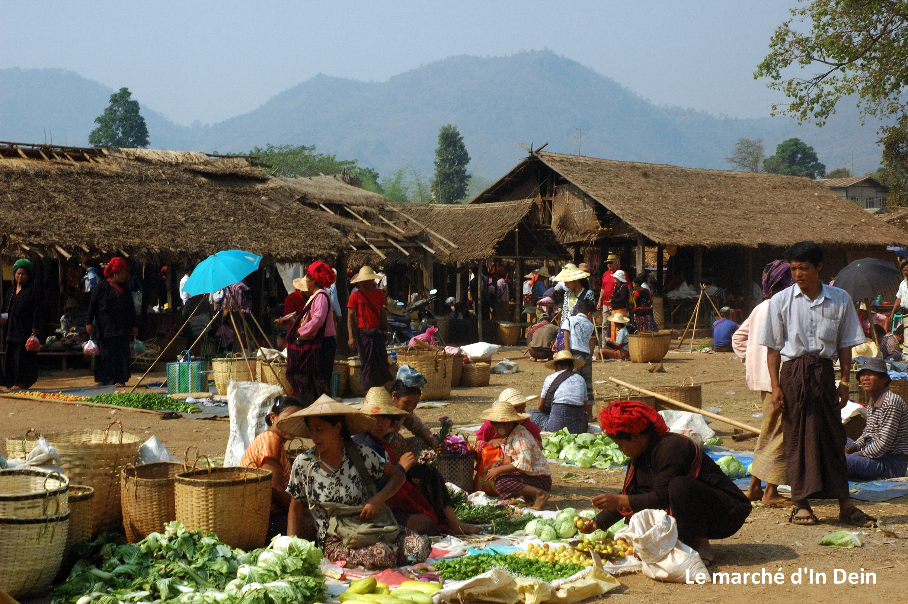 Le premier matin, même si Marie était affectée d’une bronchite héritée probablement de notre long vol de New-York à Bangkok, nous sommes partis pour un village, In Dein, à une vingtaine de kilomètres de notre hôtel où se tenait un grand marché hebdomadaire réunissant des tribus et ethnies de tout le pourtou