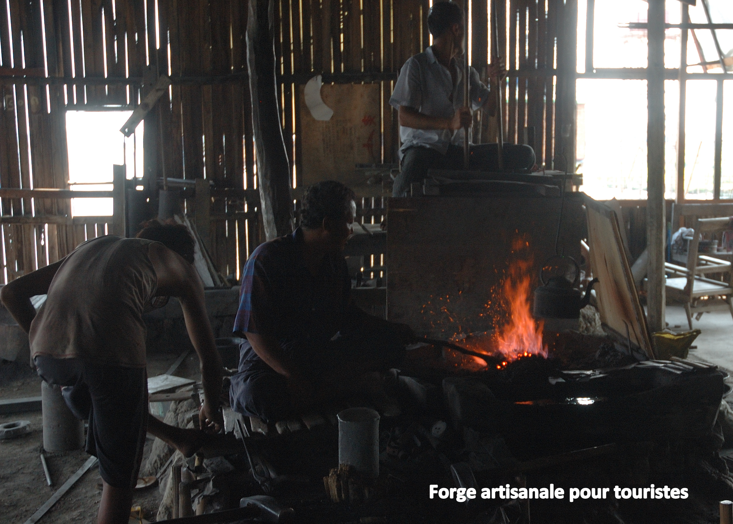 d’artisanat dont les inévitables métiers à tisser, les orfèvreries et même une petite forge sur pilotis qui rendent cependant la visite agréable à cause de l’absence de sollicitation exagérée. Une brève baignade à un établissement de sources thermales complètement désert, qui nous a occasionné une marche à pied sous une chaleur écrasante près des collines environnantes, constitue aussi un souvenir agréable. Certains temples ou monastères demeurent très intéressants à visiter même si parfois nous devenons lassés des millions de p