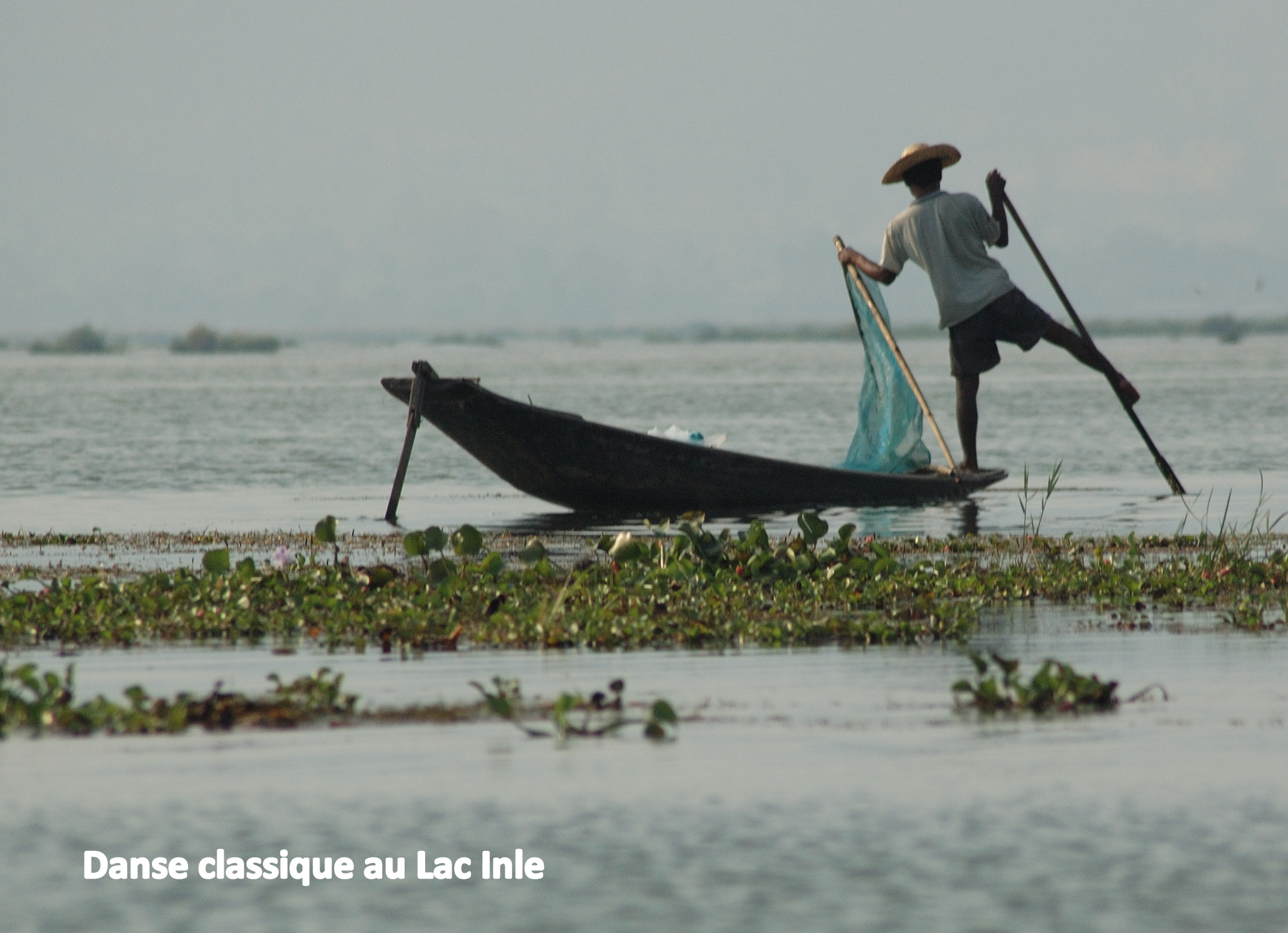 es sur pilotis, de jardins flottants, de temples et de quelques complexes hôteliers de luxe; et de multiples canaux menant à divers villages aboutissent à ce lac. Outre le trafic incessant des barques motorisées de transport, les pêcheurs y sont toujours présents, dont la plupart avec les filets coniques traditionnels; ils manœuvrent leur barque avec une rame arrière actionnée par le pied pour laisser leurs mains libres. Un ballet d’une beauté exceptionnelle… On dirait des danseurs classiques !