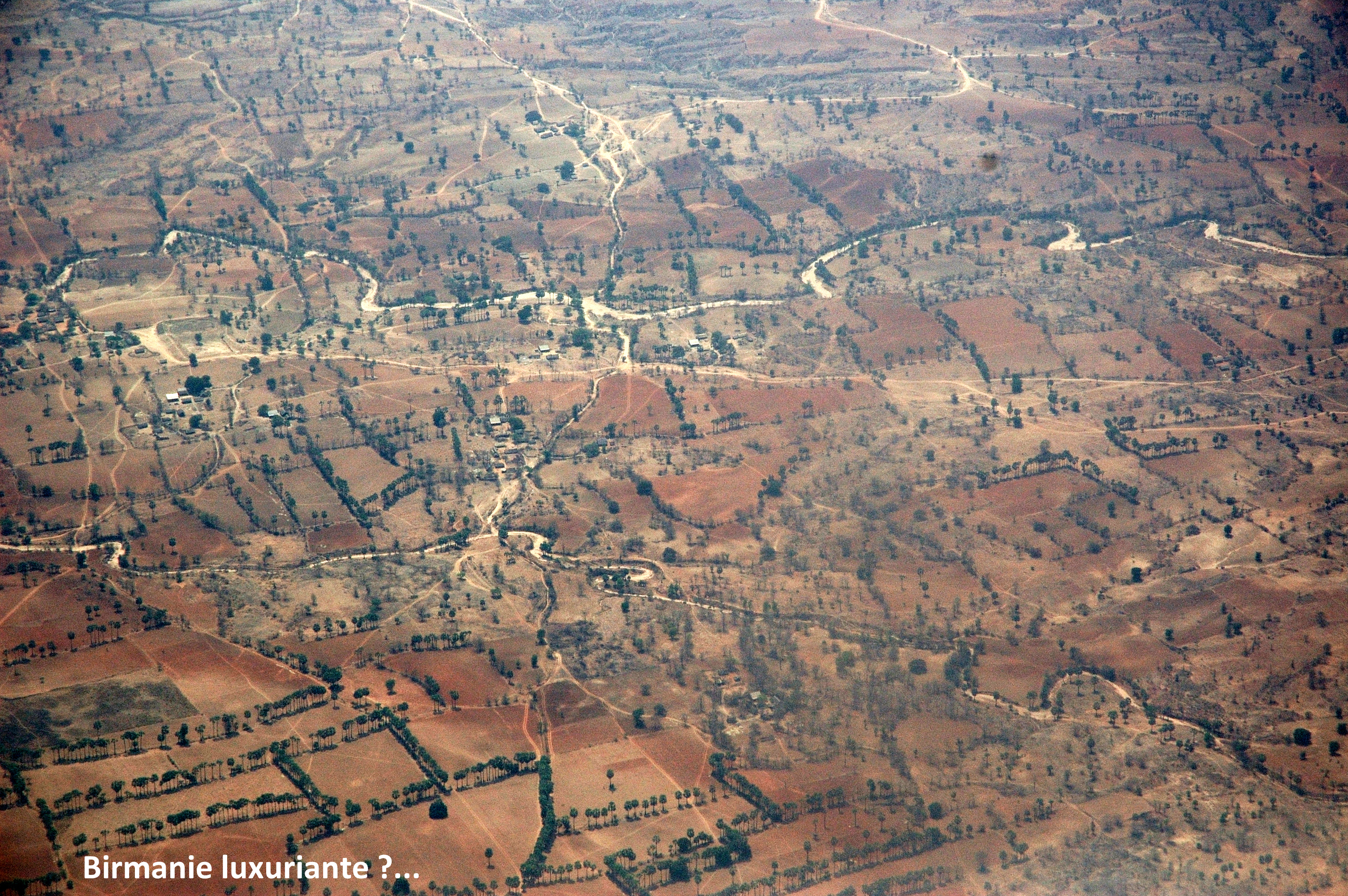 pourboire inclus dans ce prix. Je parle de demi-journée, car de 12 :00 à 16 :00 heures, tout s’arrête à cause de la chaleur extrême; nous en profitions alors pour nous reposer un peu à la piscine, ou pour dormir dans mon cas alors qu’une infection des ganglions, aggravée par la poussière ambiante, a transformé mon visage en demi-lune (à chacun sa bronchite !). Je croyais que la Birmanie étouffait sous une végétation luxuriante dense et humide comme dans le film « le Pont de la rivière Kwaï». Cela dépend probablement des régions, mais ce fût une désillusion en cette fin de saison sèche, poussiéreuse et chaude à Bagan.