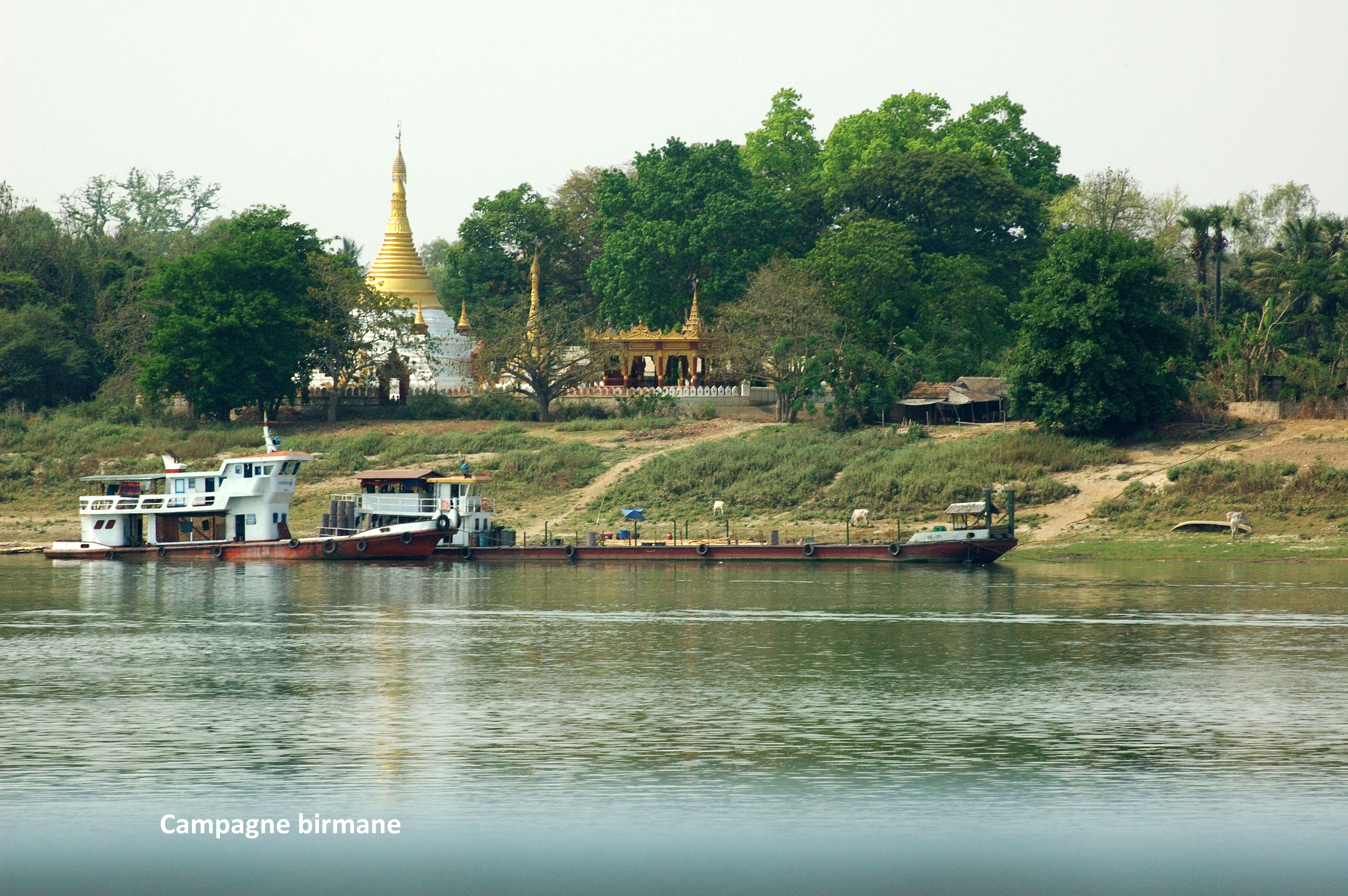 magnifique celui-là, sur les berges de l’Irrawaddy. D’ailleurs, là comme ailleurs, si notre guide nous mentionnait qu’on pouvait opter pour une excursion en bateau sur le fleuve si on le désirait, jamais aucune pression ou insistance n’était appliquée lorsque nous déclinions.