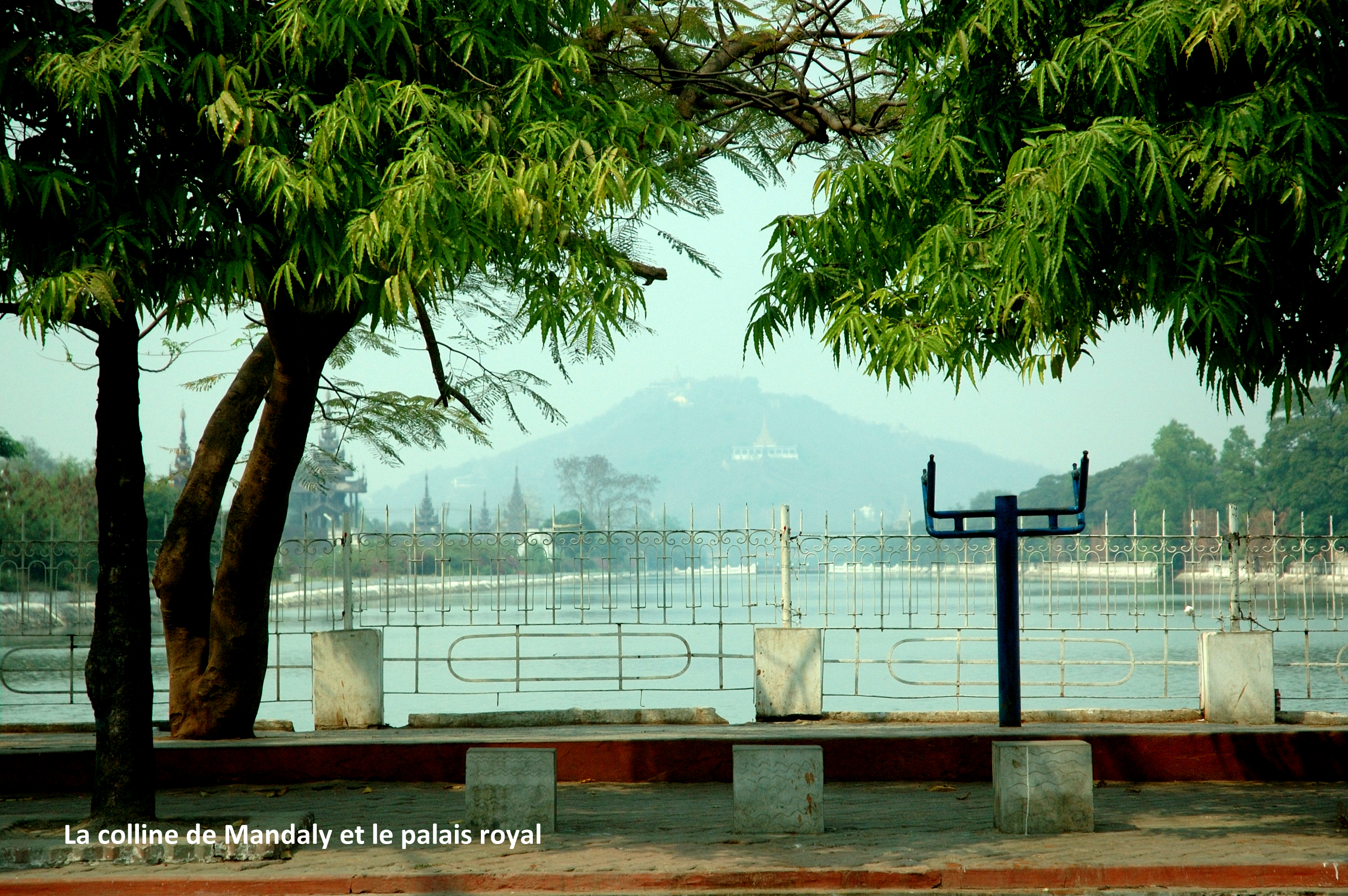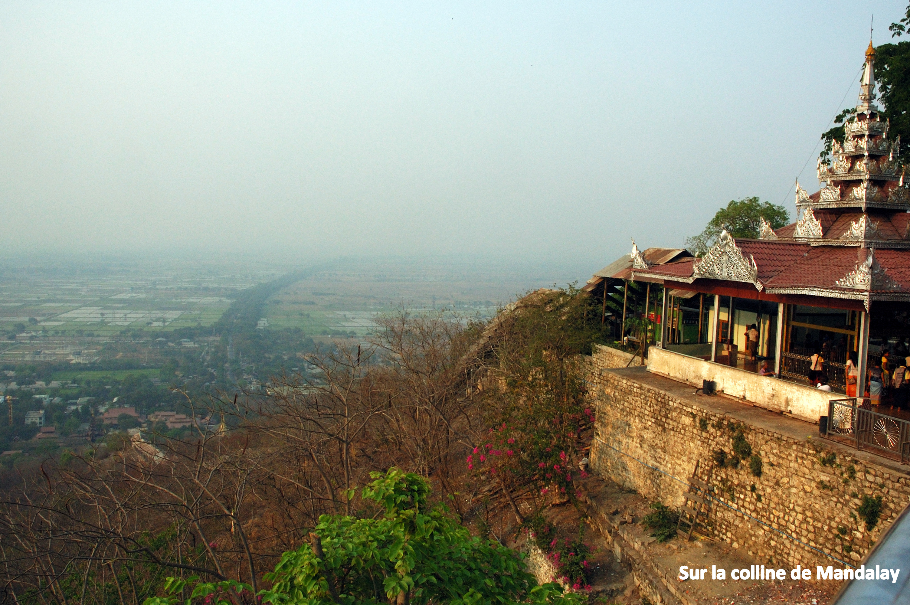 Et nous avons terminé la visite de cette journée par l’ascension de la colline de Mandalay dont j’ai effectué la moitié à pied, juste pour me prouver ! Chaud, mais facile… La vue au sommet y est belle même si embrumée, mais le monument, très couru des habitants, est assez ordinaire.