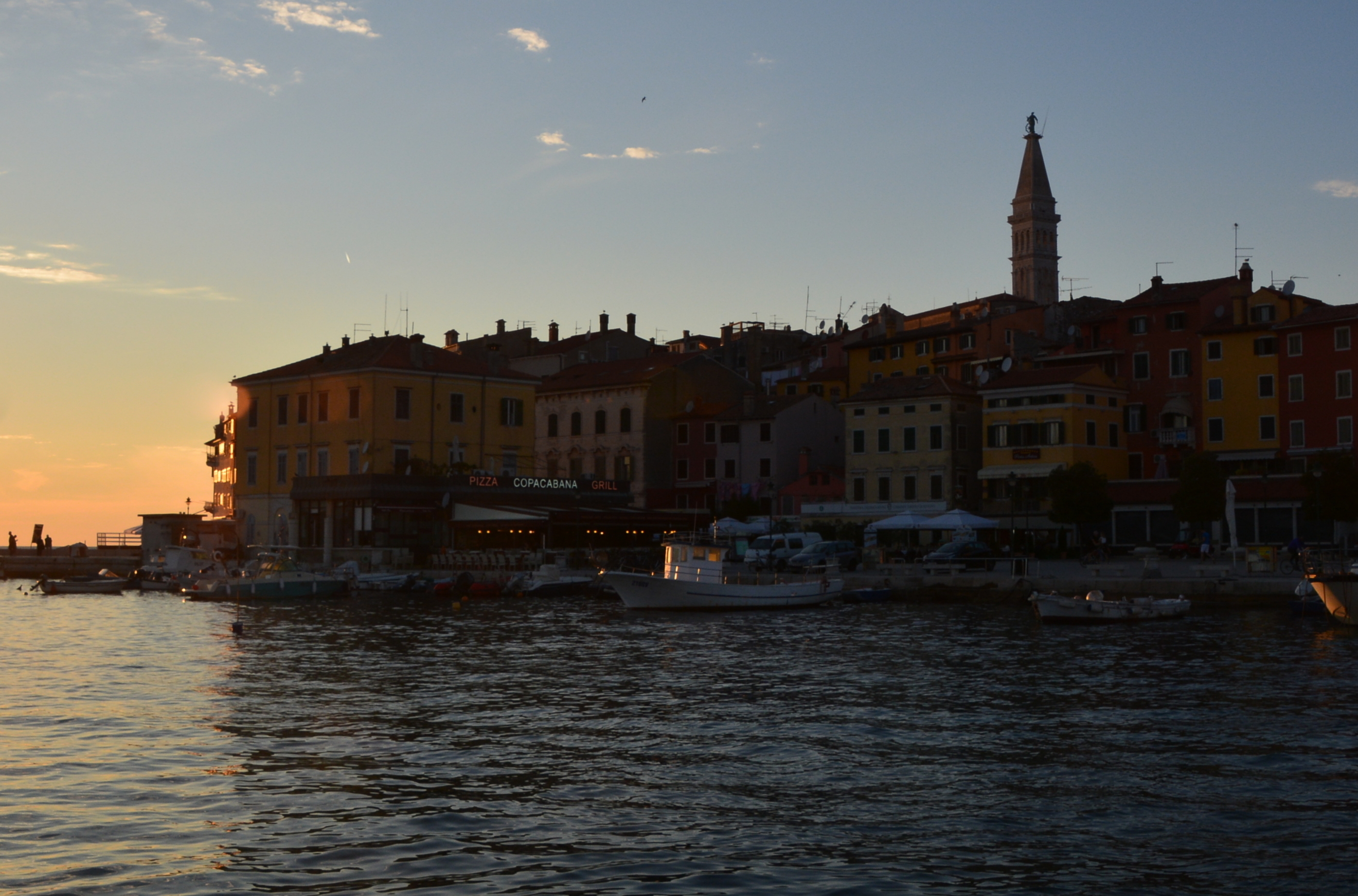 Je termine sur cette image d’un sublime coucher de soleil à Rovinj, avant la description des prochaines étapes de Split et Dubrovnik sur la côte adriatique: