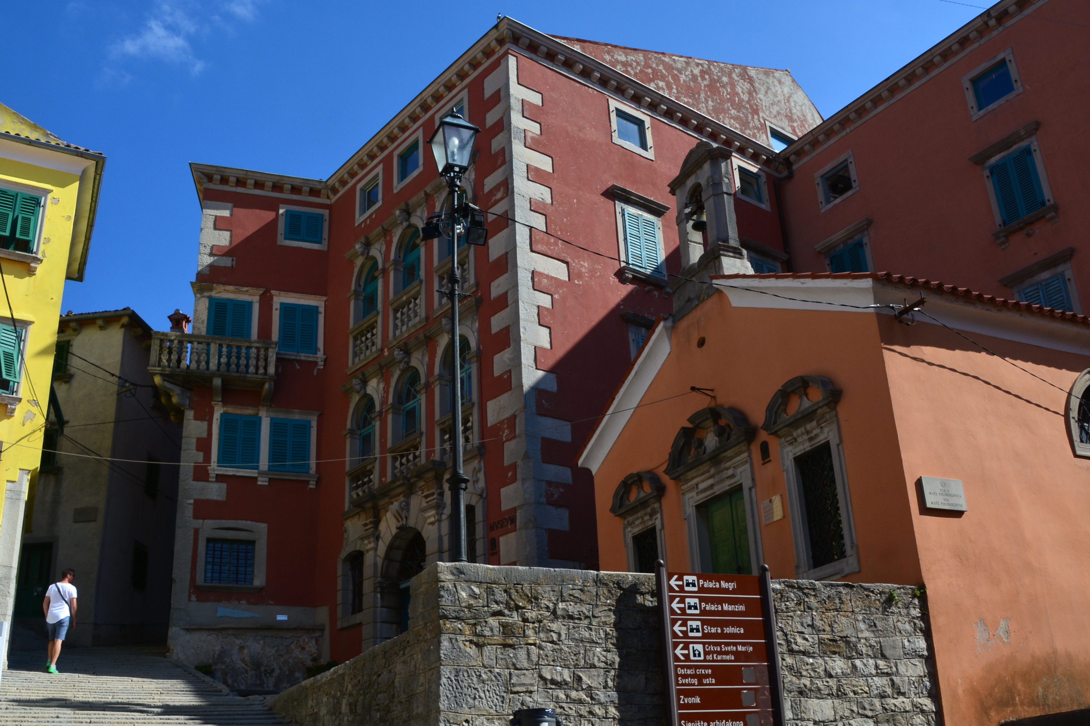 circuler dans ces ruelles étroites, sinueuses et pentues. Si la ville n’a pas le charme d’un Motovun, on s’aperçoit rapidement qu’elle était économiquement plus importante, que les édifices, même si plusieurs sont moins bien conservés, témoignent de la présence autrefois d’une bourgeoisie commerçante prospère et d’institutions politiques importantes.