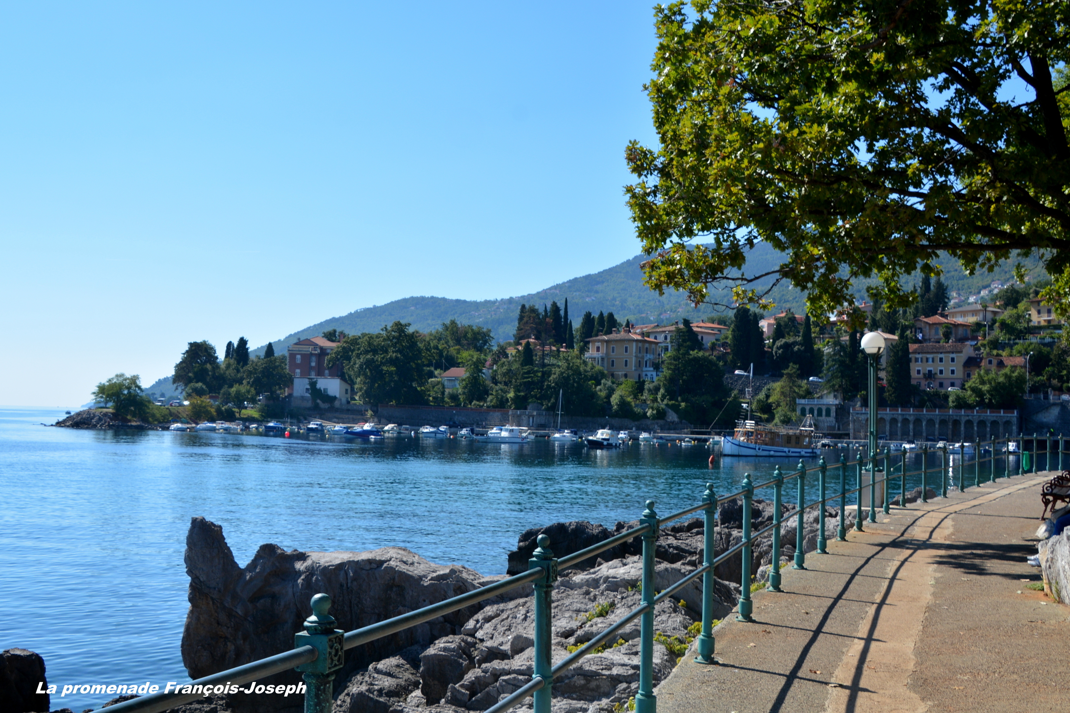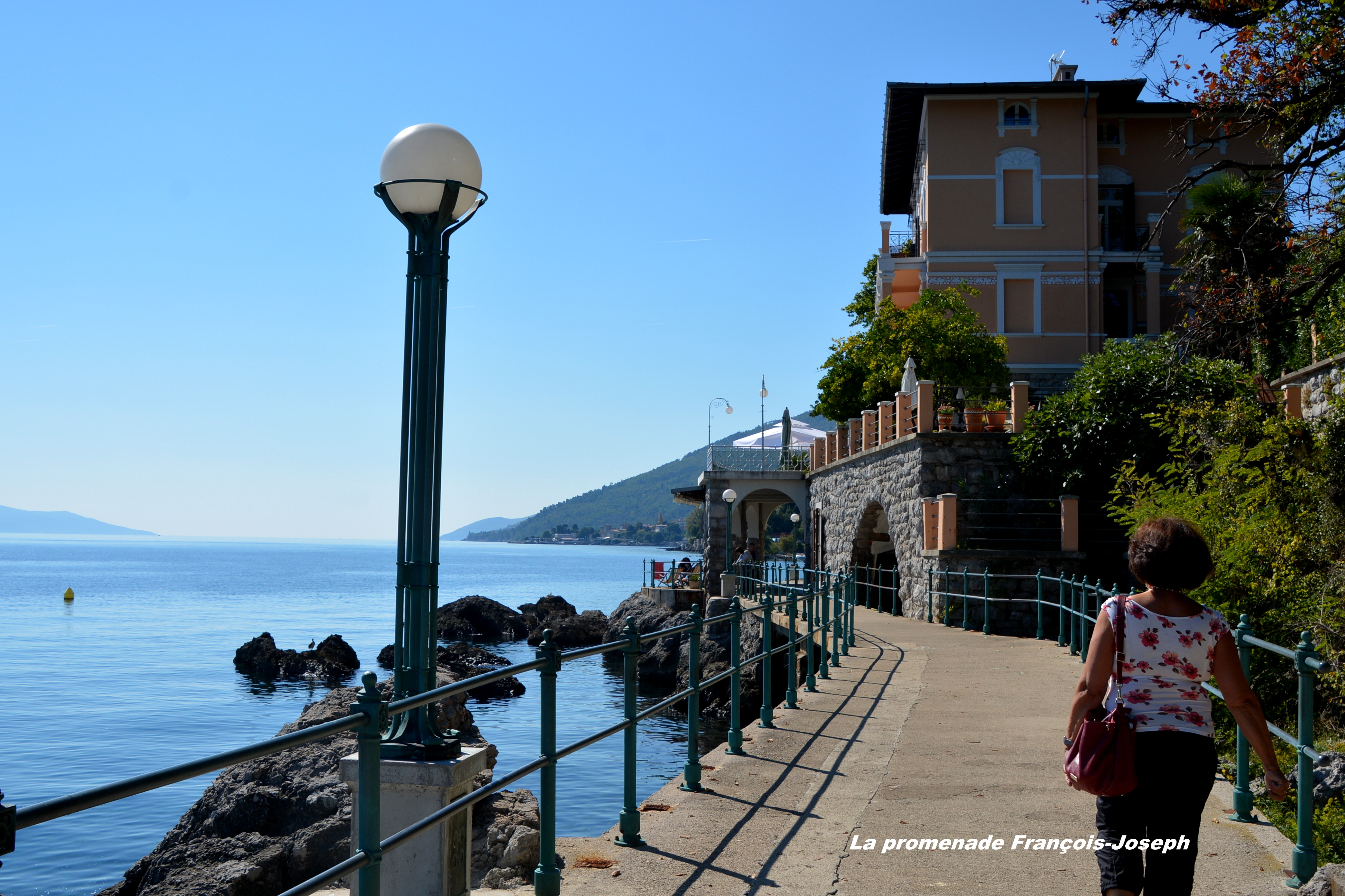 promenade qui longe la côte sur près de 20 kilomètres entre Lovran et Opatija; elle a été construite par l’empereur François-Joseph et tout en longeant la mer, elle traverse les terrains de grands hôtels particuliers. C’est peut-être là que nous avons ressenti pour la première fois les limites imposées par le court laps de temps de notre voyage de dix-huit jours ; nous y serions demeurés quelques jours de plus tant le séjour était agréable. Mais nous devions poursuivre…