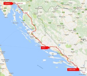 succèdent. Peu de villes… Quelques stations balnéaires que nous survolons du haut des caps… Nous traversons pendant quelques kilomètres la Bosnie-Herzégovine qui a réussi à se négocier une petite enclave marine suite aux dernières guerres des années ’90, lorsque Sarajevo fût détruite et Dubrovnik assiégée par les serbes. Et c’est l’arrivée à Dubrovnik, le point sud ultime de notre périple.