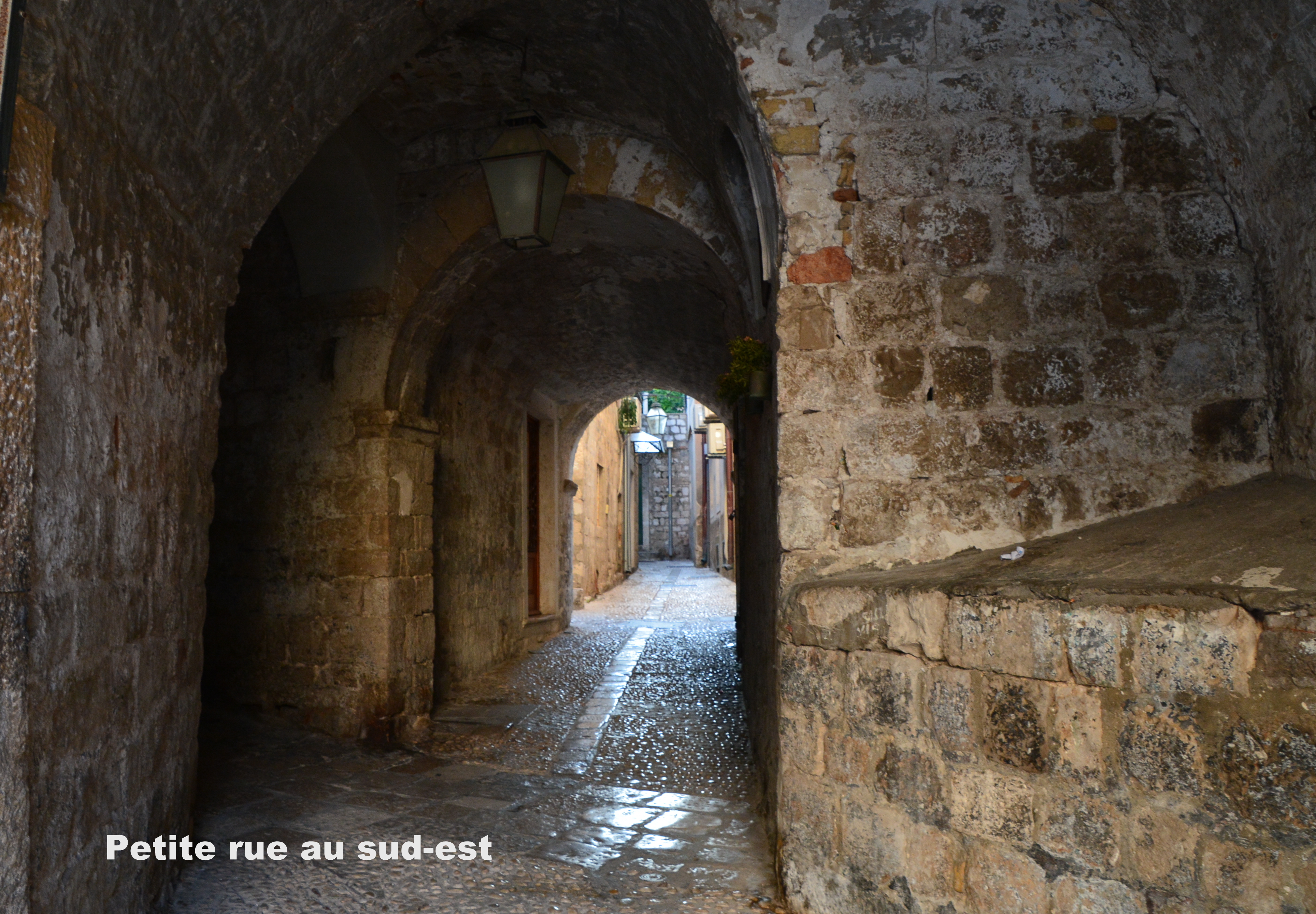 piétonne) est tel qu’il alourdira fortement le coût de votre hôtel ; nous avons opté, comme la plupart des gens, d’habiter non loin dans la péninsule de Lapad. Nous y avons loué un petit appartement chez des gens charmants où nous pouvions garer notre voiture sur la rue sans problème et sans coût. Un service d’autobus peu coûteux et efficace nous permettait d’aller à notre guise à la ville qui n’était pourtant située qu’à un kilomètre, mais dont le retour impliquait une longue montée qui taxait ma vieille carcasse paresseuse.