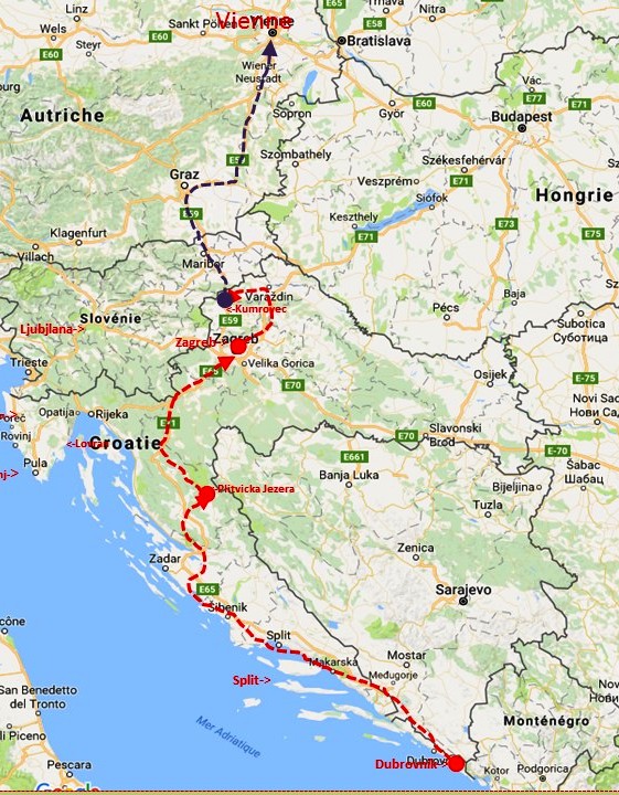visité le Parc national des lacs de Plitvice (Plitvička jezera) en quittant l’Istrie, avant notre visite à Split. Mais pour les fins de cette chronique de voyage, il allait mieux de joindre cette partie de notre trajet à la visite de Zagreb et du Zagorje; d’ailleurs, le seul motif qui nous avait poussés à visiter ce parc si tôt dans notre voyage était que, voyageant sans horaire préétabli, nous devions cependant revenir à Vienne le 7 octobre et que Dubrovnik étant très distant, je préférais revenir directement vers Zagreb pour gérer des imprévus possibles. Je ne crois pas que cela importe réellement pour le lecteur ou la lectrice qui ne veut pas tant connaître les détails de notre voyage que la description des régions parcourues.