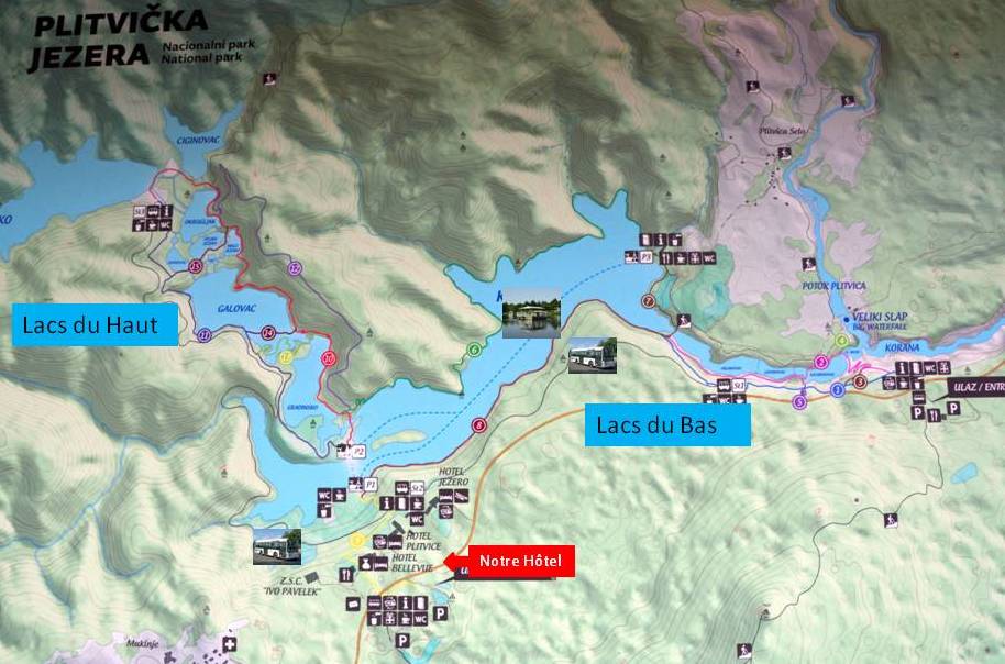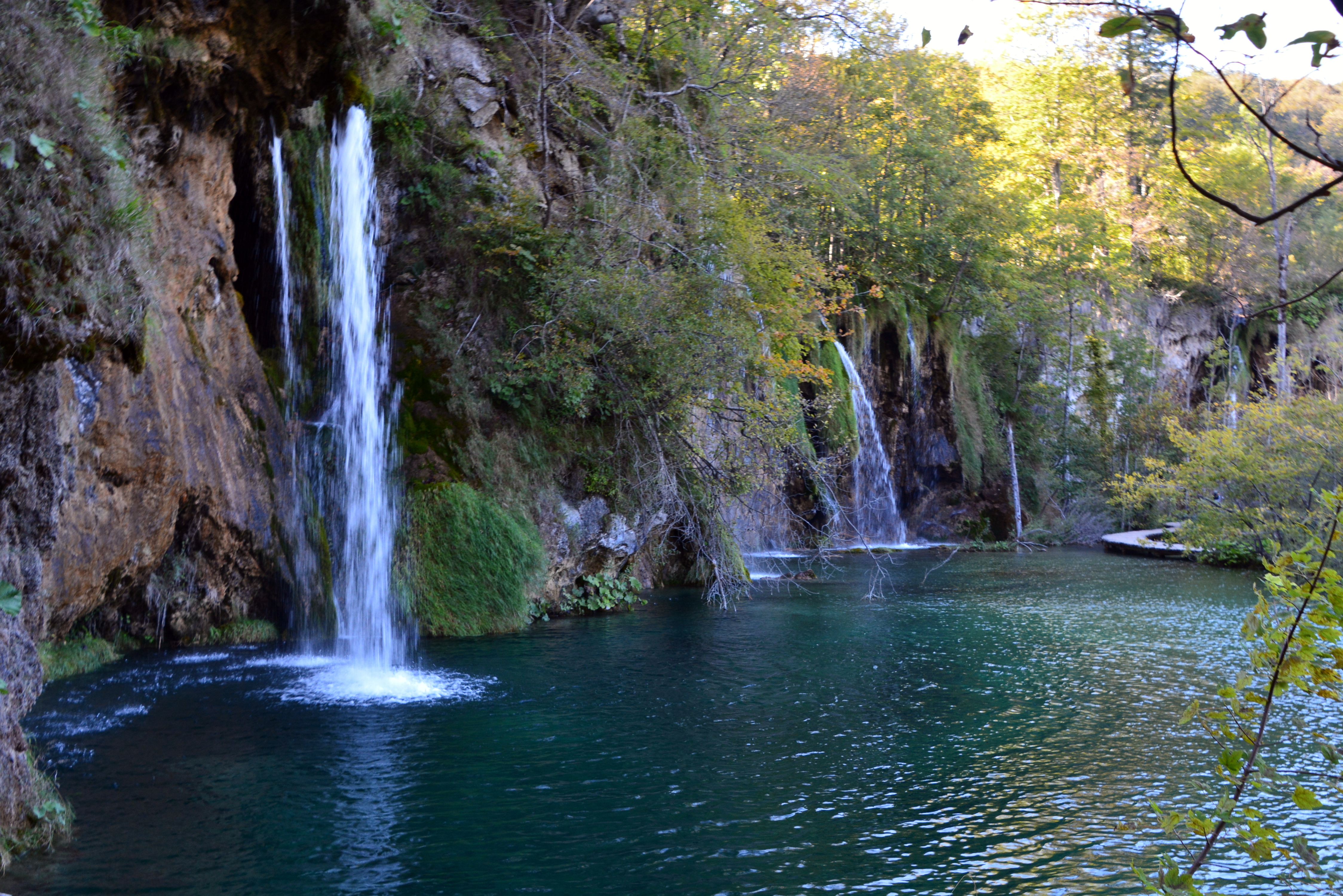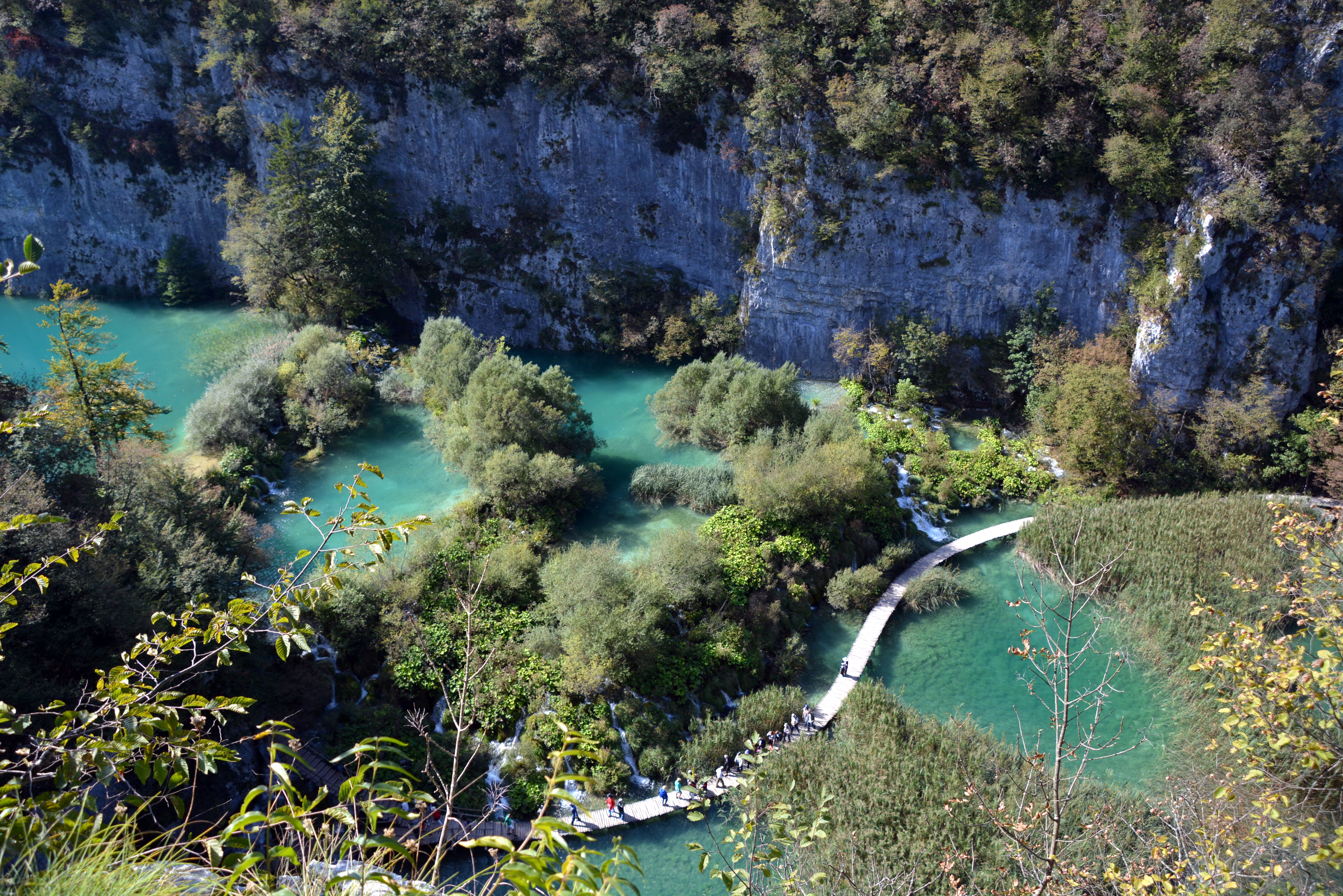 vallée encaissée plus bas, mais qui sont séparés les uns des autres par des travertins qui constituent en quelque sorte des petits barrages naturels. L’eau s’écoule d’un lac à l’autre en débordant au-dessus de ces travertins et forme ainsi d’innombrables chutes verticales, parfois des cascades; parfois elle s’engouffre dans un trou pour ressurgir « quelque part ». Ce parc, fierté de la Croatie, est classé au patrimoine de l’Unesco.