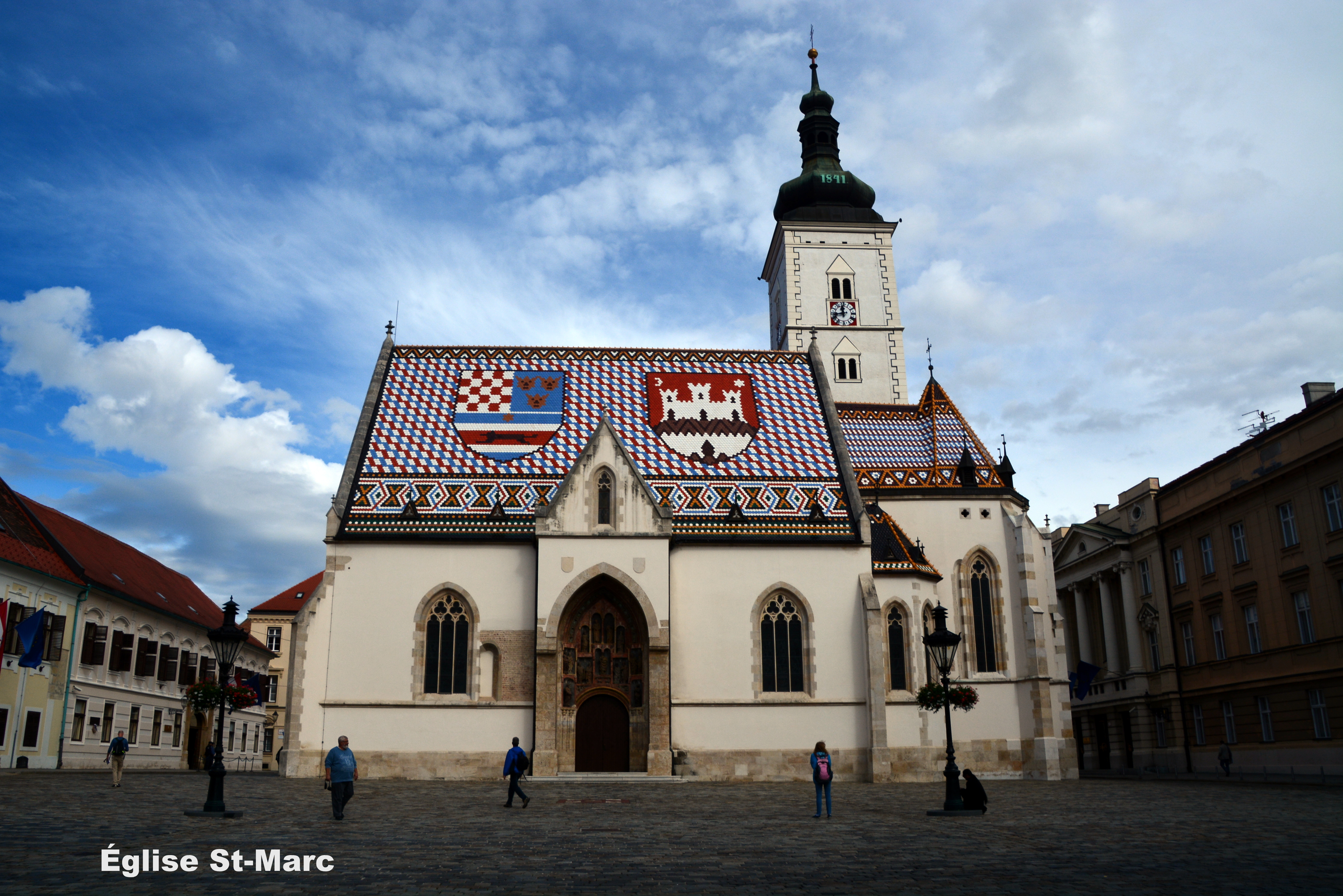 église St-Marc (évidemment fermée !), un monument national en face de l’assemblée législative. Pas loin, un petit parc artistiquement décoré domine la ville. Il en est de même d’une terrasse qui domine le Kaptol et la cathédrale.