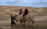 rafraîchissante, le chameau est définitivement plus confortable. En fait, mieux vaut être assis entre deux bosses que devant une seule. Et le poil de chameau étant assez chaud, vous pouvez y enfouir vos mains en vous agrippant à une bosse pour les maintenir au chaud. À la fin, j’ai commis un impair en donnant un généreux pourboire au vieux chamelier qui nous a accompagné à pied pendant notre ballade de plus d’une heure, ce dernier m’assurant qu’il était déjà payé par notre agence. J’ai maintenu. Surpris, notre guide a cependant laissé faire.