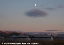 sommes arrivés au campement alors que la température avait chuté bien en deçà de 0C. Mais c’était incroyablement féérique avec le clair de lune qui baignait le paysage, quoiqu’un peu frisquet…