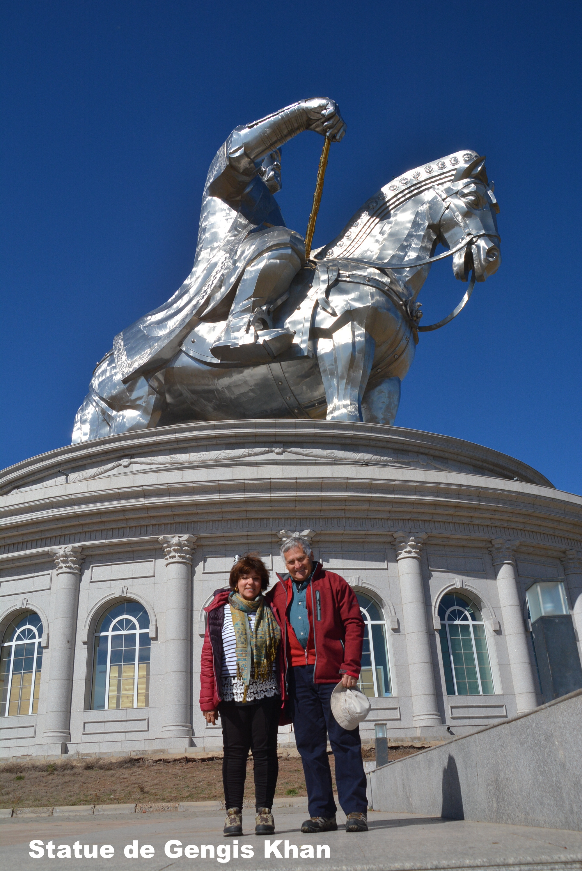 horreur selon nous. Une statue équestre, haute de trente mètres, de Gengis Khan (un bien meilleur gouvernant que ce que l’occident chrétien a bien voulu reconnaitre, à la fois cruel, mais tolérant et bon administrateur). Mais nous n’allions certes pas offenser nos camarades mongols Byamba et Moodi et nous avons visité