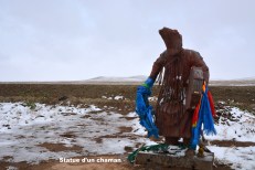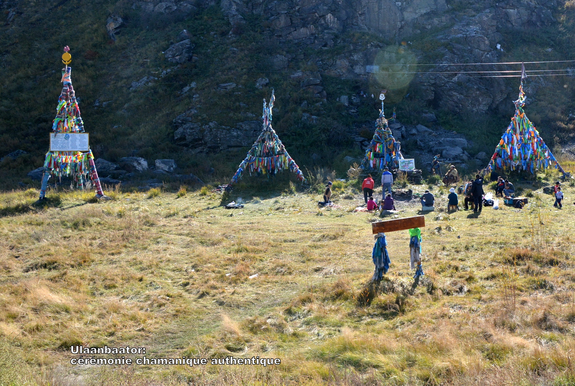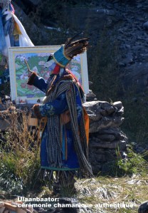 gens de la place qui viennent ainsi demander des faveurs à des ancêtres ou se débarrasser de mauvais sorts. Pour les Mongols, fréquenter les temples bouddhistes et visiter leur chamane préféré ne soulèvent aucune contradiction. Cette cérémonie fût une conclusion inattendue et inespérée à ce magnifique périple qui achève. Nous laissons Byamba et Moodi à notre hôtel, mais non sans des embrassades, accolades et une ou deux larmes. Leur chaleur nous a permis de mieux admirer et comprendre ce magnifique pays et son peuple. Nous avons échangé sur nos vies, et même sur nos croyances ou absence de croyances religieuses. Ces gens nous ont beaucoup enrichis et ils furent de loin la plus belle rencontre de notre voyage.