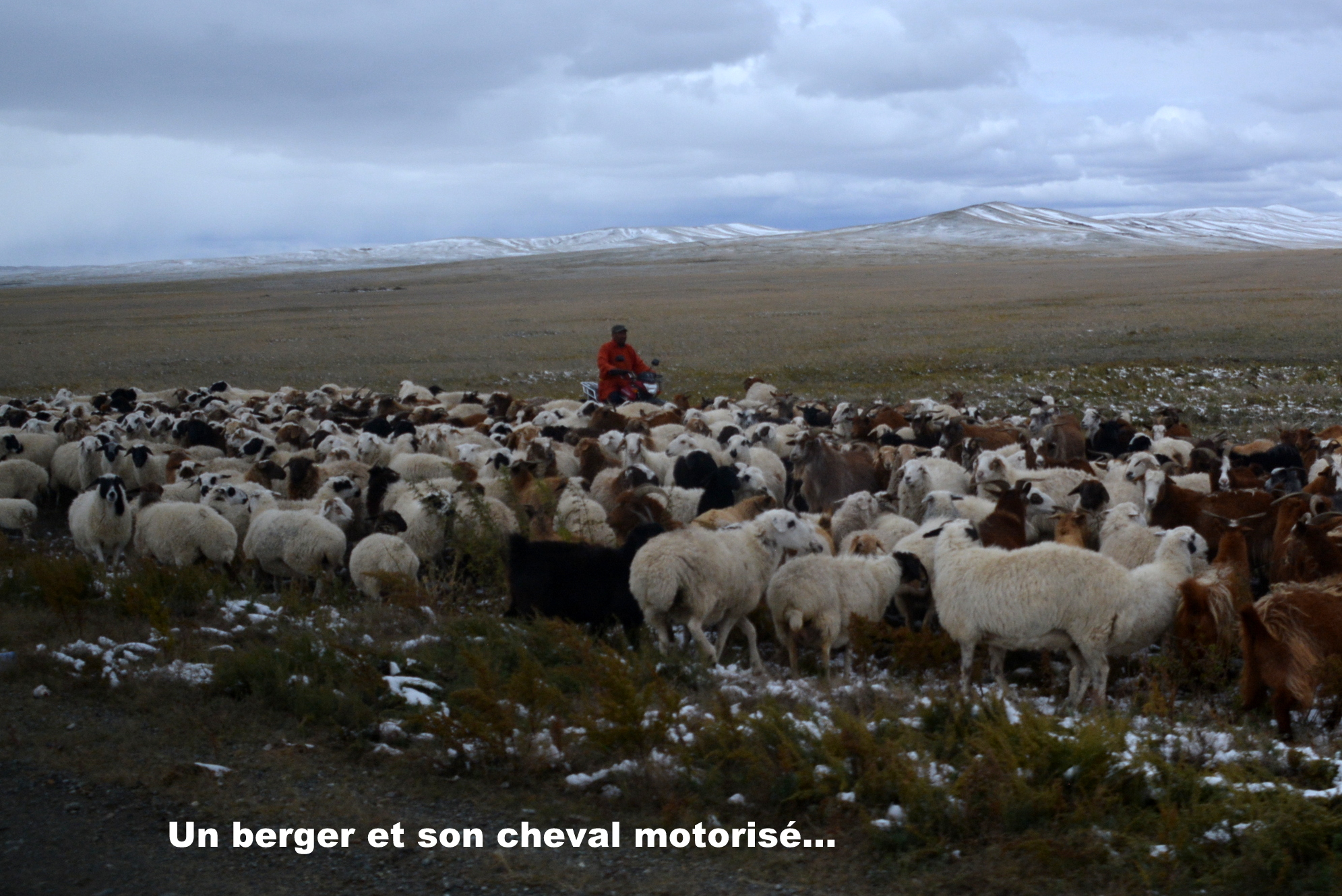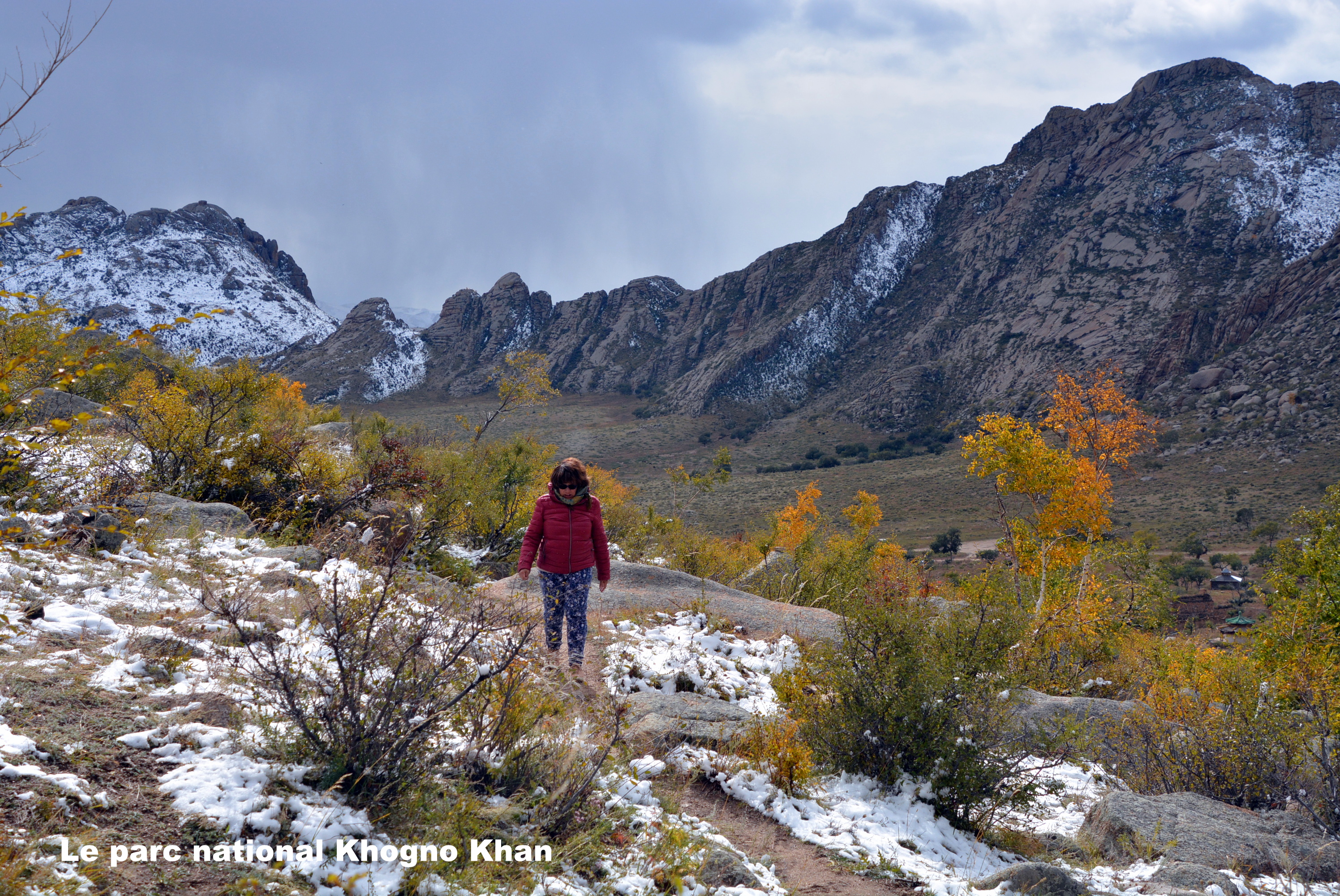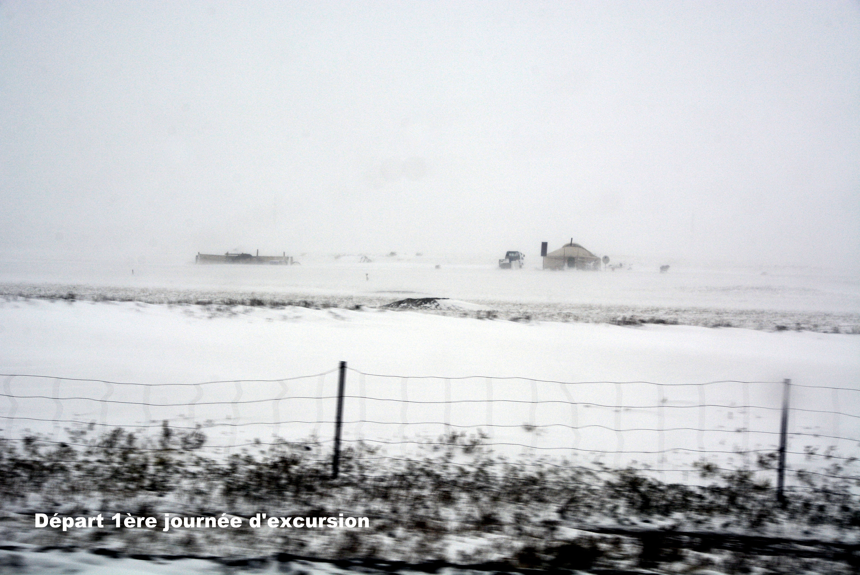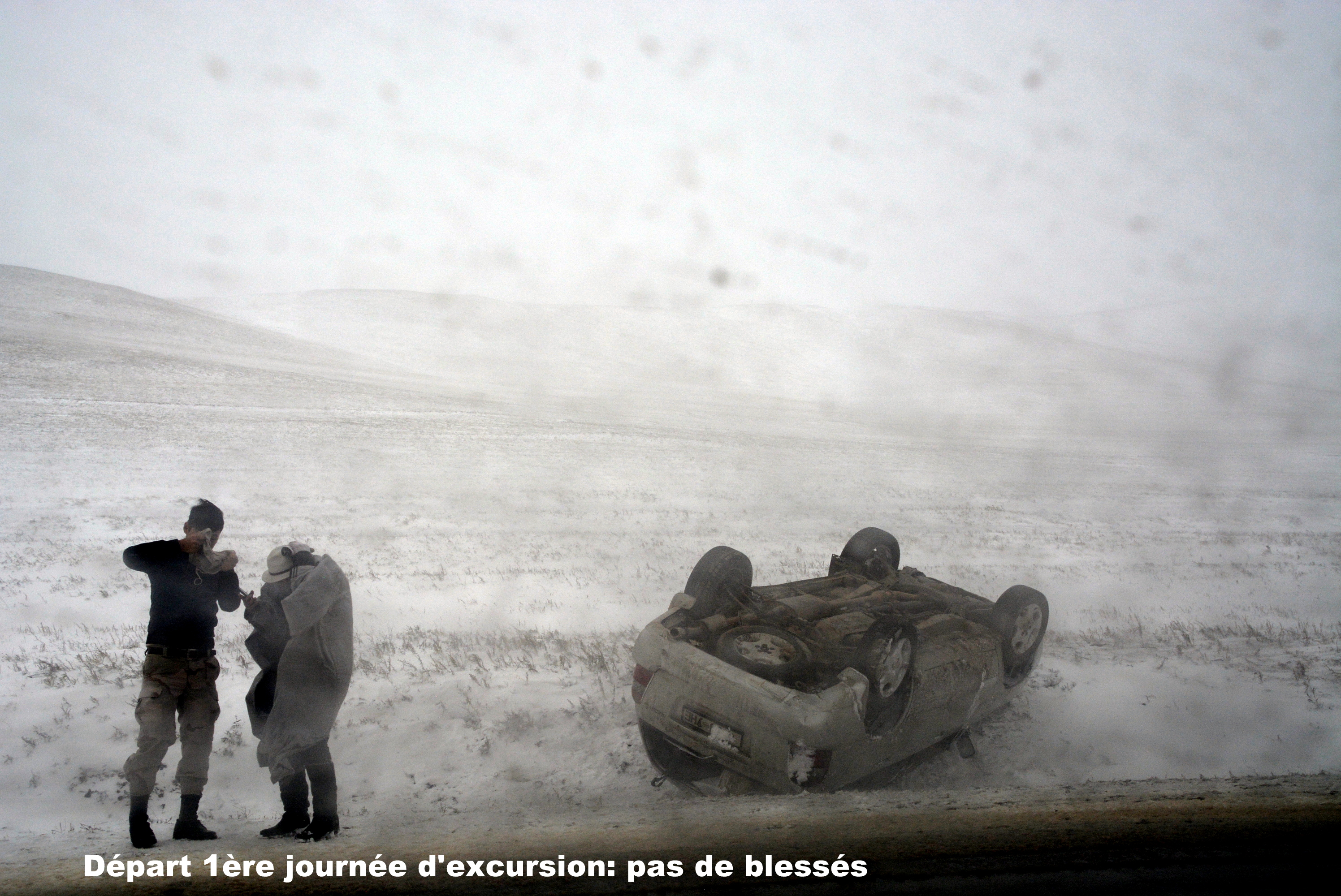 septembre, car Ulaanbaator est quand même sur un plateau à 1500 mètres d’altitude. Et la route monte à près de 2000 mètres pour en sortir. Donc, nous partons en pleine tempête de neige un 20 septembre. Nos compagnons sont un peu réservés, comme nous, et n’osent pas incommoder leurs hôtes en s’arrêtant pour aider