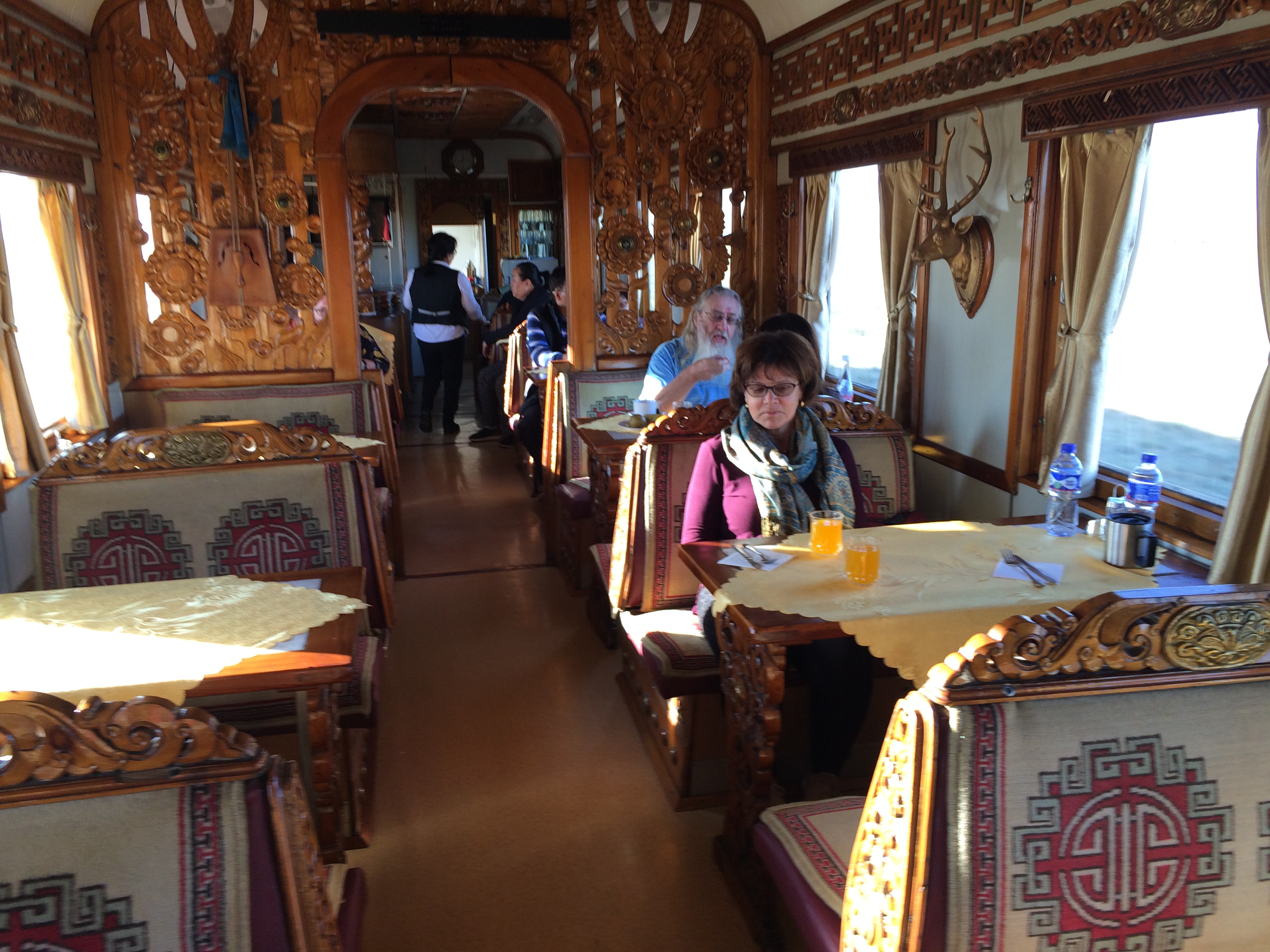 Nous poursuivons notre route avec le même personnel chinois, sauf pour le wagon-restaurant beaucoup plus luxueux, mais où nous prenons un petit déjeuner assez