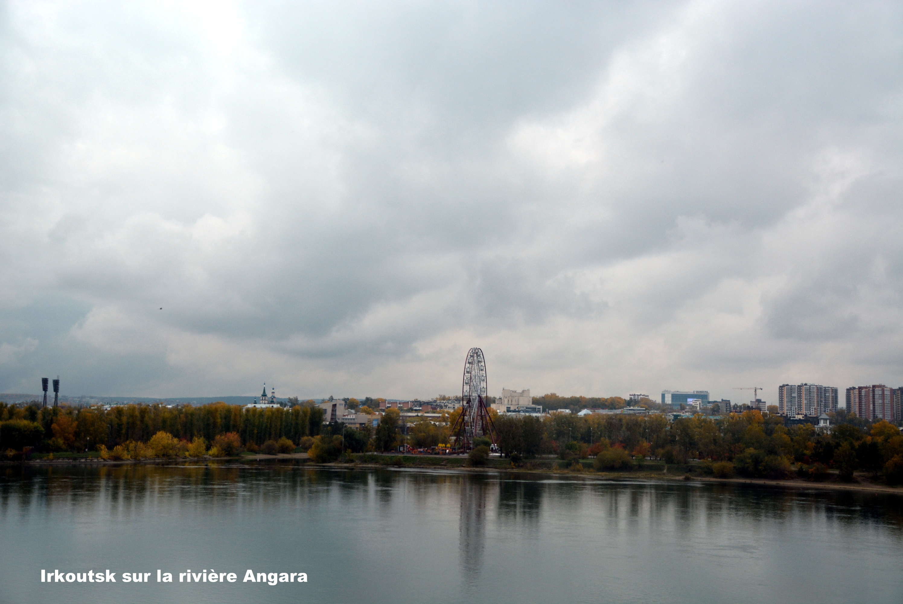 jusqu’à l’édification du transsibérien. Elle est bâtie sur la rivière Angara qui s’écoule du lac Baïkal situé à 60 kilomètres au sud. Pendant la révolution bolchévique, les russes blancs y connurent leur Waterloo; elle me semble demeurer un foyer communiste assez fort, la statue de Lénine y demeurant très en vue sur son socle au centre-ville..