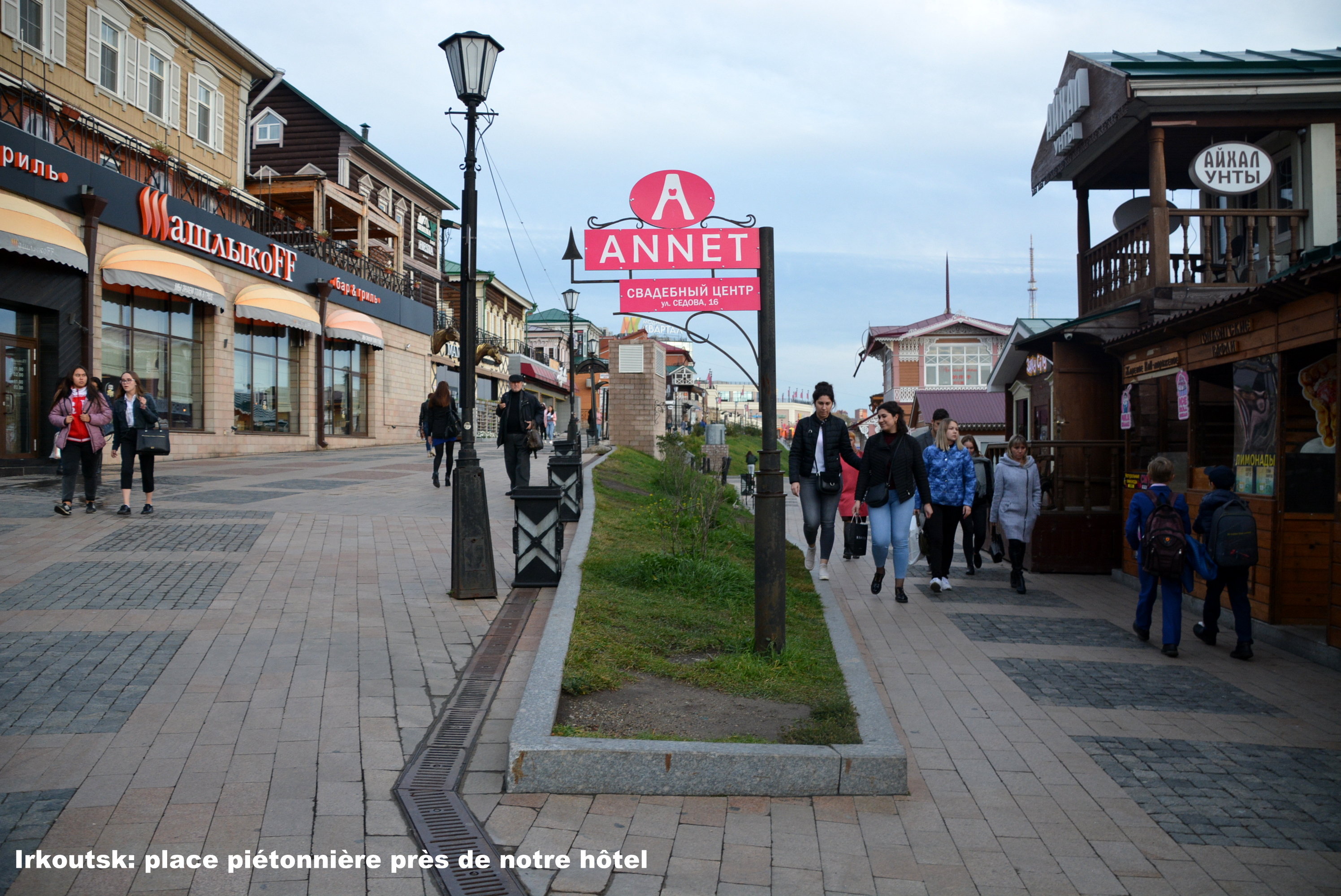 semble absolument ignorée dans la lointaine Sibérie, comme nous en fait d’ailleurs part Anne Nivat dans son très passionnant livre : « Un continent derrière Poutine ? ». Mais bon, les transports en commun y semblent efficaces et les chauffeurs de taxis assez honnêtes. Irkoutsk est une ville intéressante à visiter, une étape obligée pour qui parcourt le Transmongolien ou le Transsibérien, et pas seulement pour sa proximité du Baïkal. Les contacts que nous y avons eus ont été chaleureux, avec une population assez jeune selon ce que nous avons pu constater. La bouffe est assez ordinaire (sauf en Chine, notre voyage n’aurait pu faire l’objet d’une émission sur le canal Évasion) , mais légèrement meilleure dans les restaurants géorgiens. Mais nous n’avons jamais choisi une destination en fonction de la gastronomie, même si nous avons apprécié le Périgord !