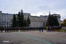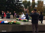 d’un grand édifice militaire, avec de jeunes cadets, garçons (surtout) et filles. Même si l’armée allemande ne s’est certes pas rendu ici, la ville a fourni son lot de soldats morts aux batailles de Moscou et de Léningrad. Et une coutume russe veut que les nouveaux mariés se rendent sur la tombe du soldat inconnu après la cérémonie de mariage (et pas seulement en cette journée du souvenir). Ce qui fût fait alors même que nous y étions!
