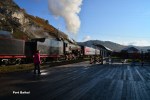 enneigés sur l’autre rive, surplombant des collines dorées plus basses. Nous faisons quelques escales de quelques minutes à chaque fois; cela nous permet de nous dégourdir les jambes et aussi de prendre quelques photos sans le filtre teinté des fenêtres du train. Notre wagon est plein de