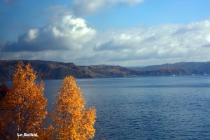 kilomètres de large, il atteint jusqu’à 1600 mètres de profondeur. Son volume d’eau est équivalent aux 5 grands lacs nord-américains réunis. Mais il est dans une région sauvage de la Sibérie et ses alentours sont à l’avenant, Irkoutsk à 60 kilomètres étant de loin la ville la plus peuplée. Cette partie de la Sibérie, d’Irkoutsk jusqu’à Vladivostok, est assez accidentée et les paysages y sont superbes, surtout en automne. Comme le but de notre voyage n’était pas la vie dans une station balnéaire, nous avions choisi de demeurer à Irkoutsk et non à Listvianka (le Old Orchord du coin) ou à l’ile Olkhon, le rendez-vous des trekkeurs. Nous avons cependant profité d’ une excursion d’une journée pour contempler cette merveille de la nature.