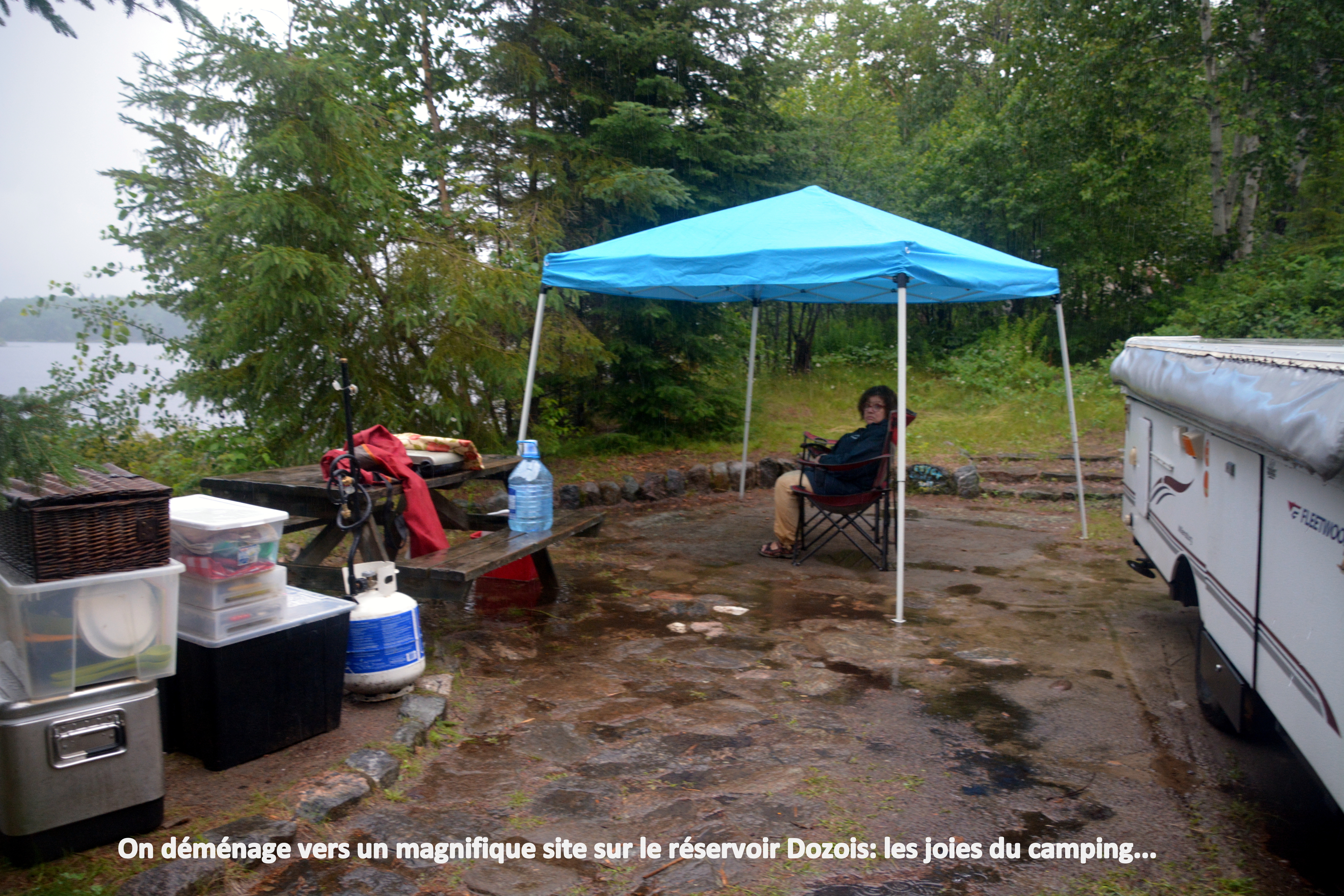 Québec pour nos vacances d’été. Nous devions aller à Tadoussac, mais des ennuis électriques sur la tente-roulotte m’on forcé à annuler notre réservation; par la suite, impossible d’y retrouver un emplacement libre. Alors, nous avons opté pour suivre l’Outaouais en partant de la réserve faunique de La Vérendrye. Nous avons réussi à réserver deux sites successifs, pour un séjour total de trois jours, au camping de la Rivière des Outaouais sur le Réservoir Dozois.