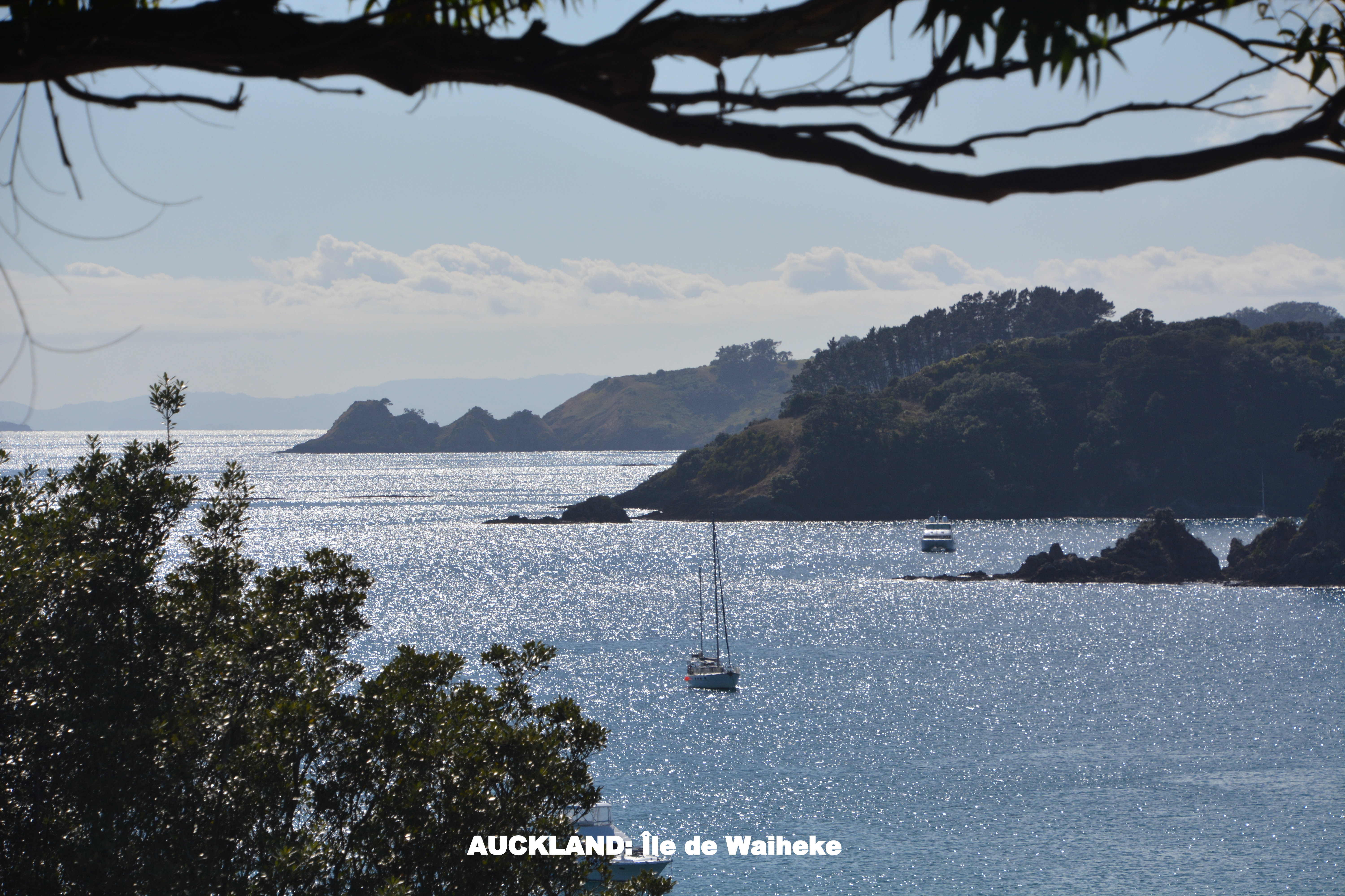 avons pris un traversier pour visiter la plus belle : Waiheke. La vue d’Auckland du traversier vaut à elle seule le voyage. L’Île elle-même est verdoyante et vallonnée. À moins d’apporter son vélo, il faut utiliser ici aussi le transport en commun, car les distances peuvent parfois être suffisamment grandes pour faire rater le