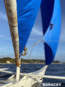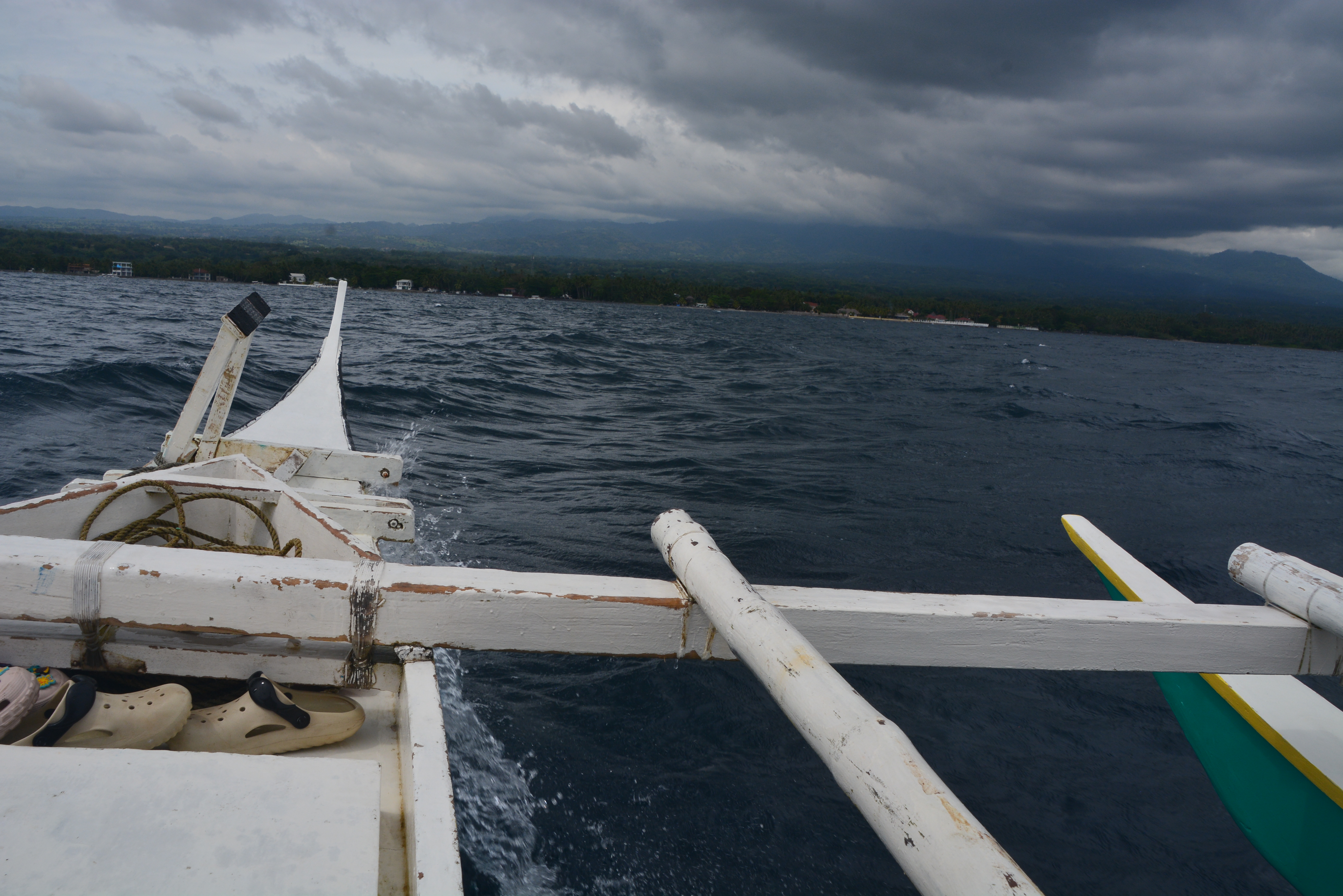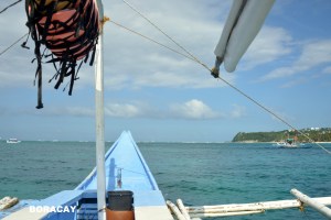 . La traversée de près de 30 minutes se fait dans une petite embarcation à balanciers typique des Philippines où les vents souvent assez forts pourraient faire chavirer une embarcation monocoque. Si l’aller fût calme, on s’est fait brasser beaucoup au retour.