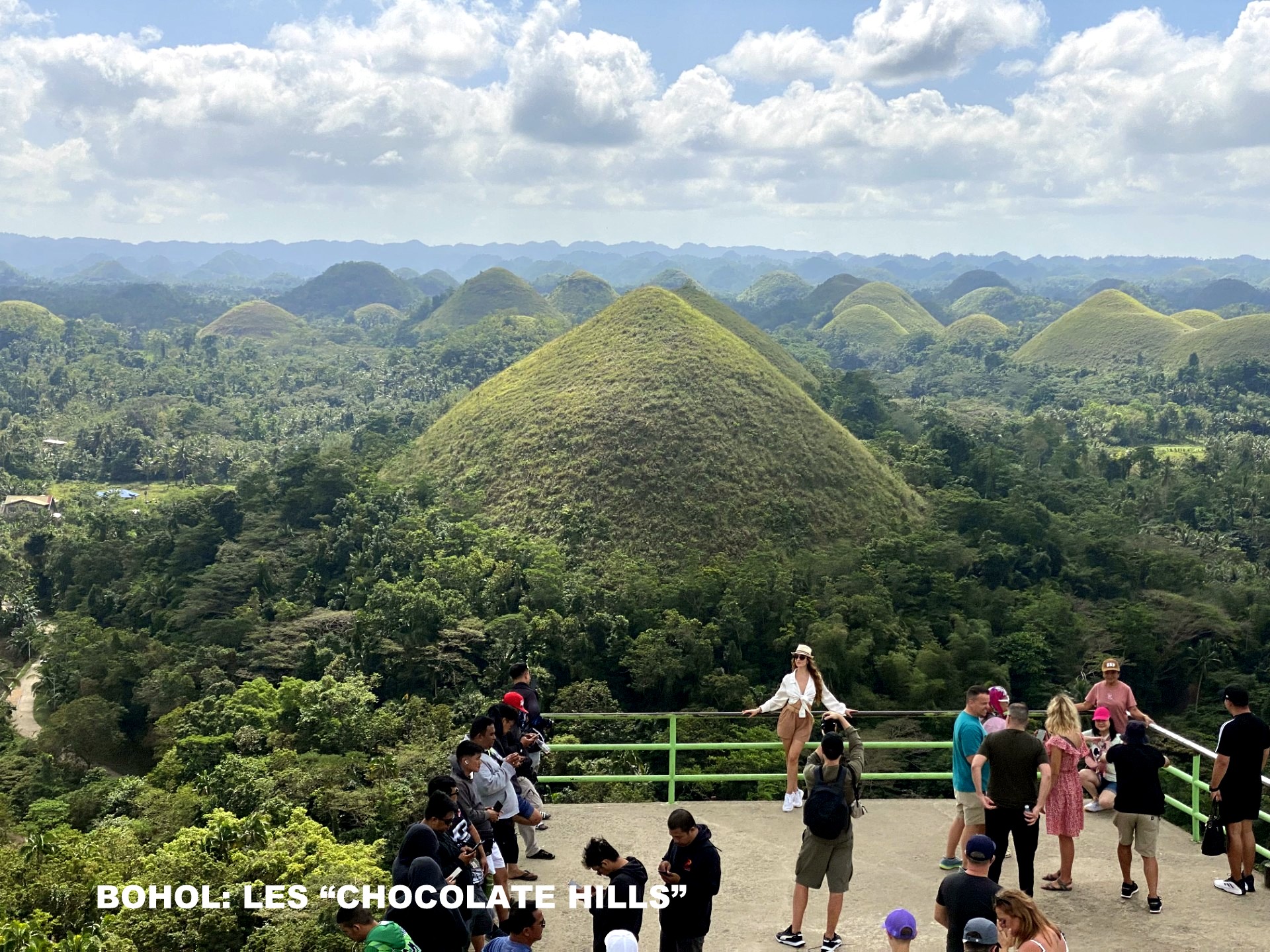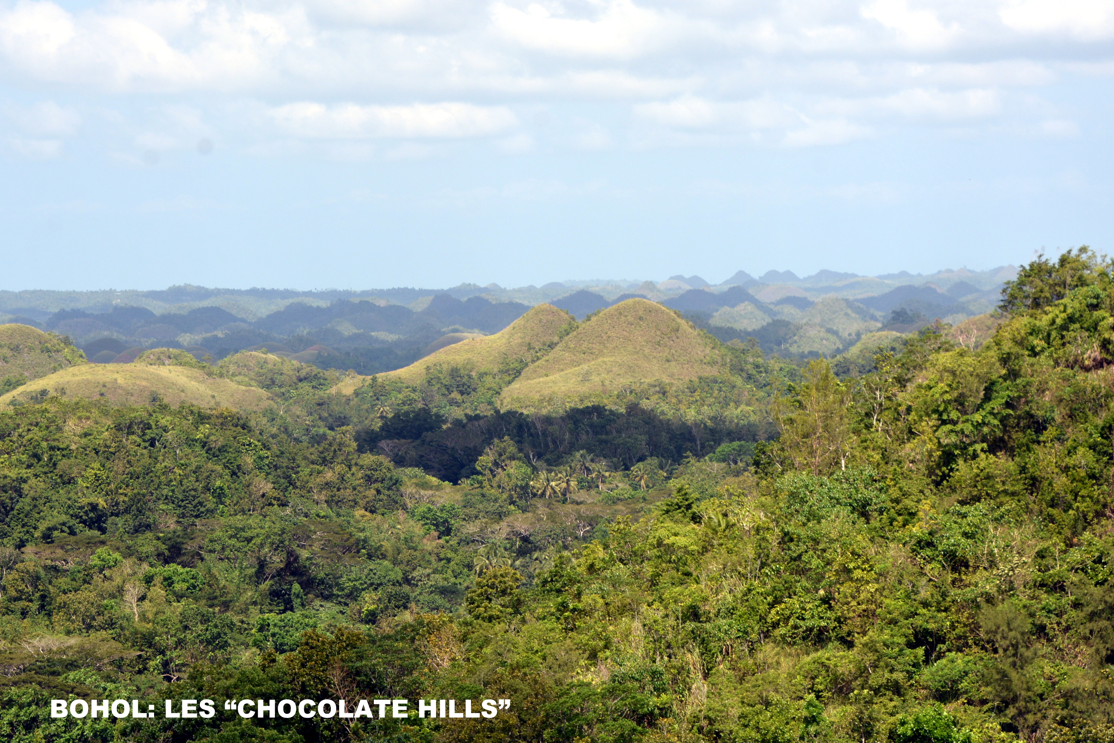 pour une dizaine de personnes, mais où Marie et moi trônions seuls, nous sommes arrivés aux Chocolate Hills ainsi nommées pour la